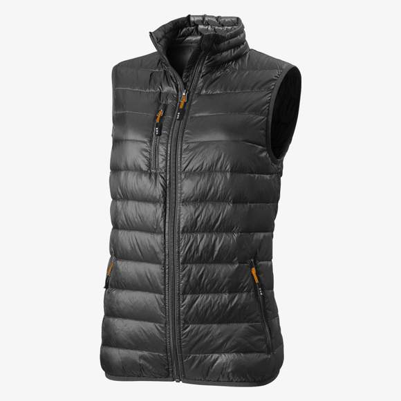 Den lette dun bodywarmer til kvinder indeholder trykket dun med indvendig stormklap og hagebeskytter. Den afsmalnende talje sikrer en mere præcis pasform. Den har en brystlomme med lukning og lynlåslommer ved hænderne. Den centrale metallynlås ledsages af et kontrastbånd og en easy grip lynlåsflig. En ophængsløkke er integreret i kraven, og hovedetiketten er overført for øget komfort.