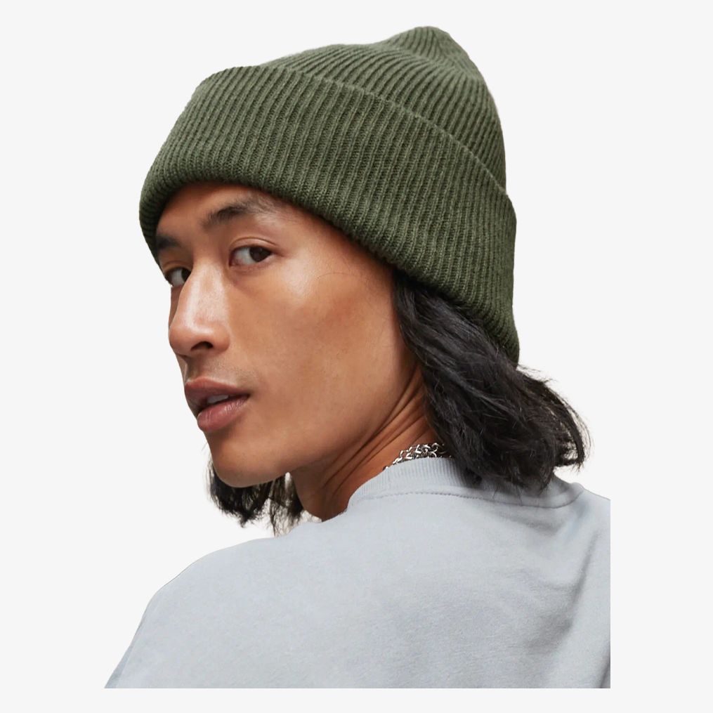 Den klassiske hue med bred kant er i ribstrik med dobbelt lag. Kronen har usynlige sømme for øget komfort. Den brede kant muliggør optimeret dekoration. One size med aftageligt mærke.