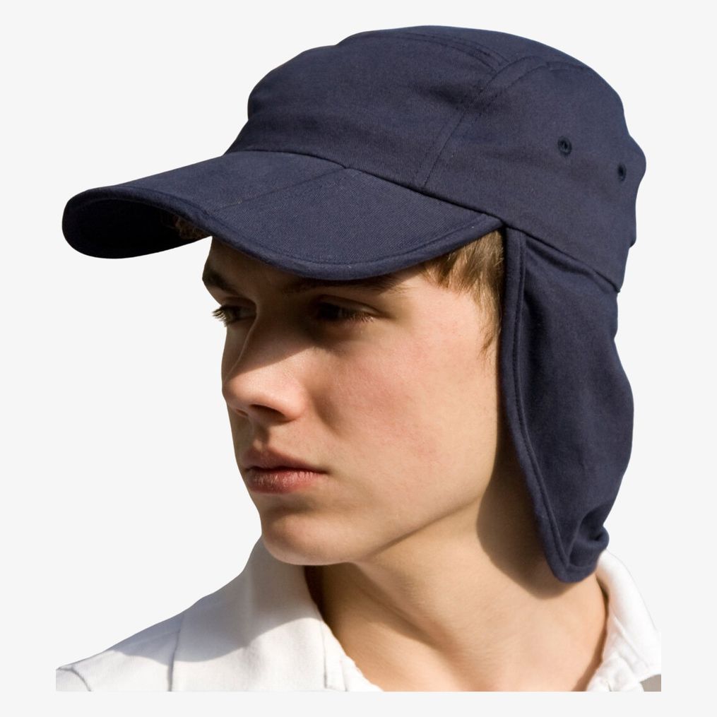 Fold Up Legionnaire Cap er en kasket med 3 paneler i plush-bomuld, med sideøjer og pasform via elastik i siderne. Det lange bagpanel dækker nakken for at begrænse direkte soleksponering.
