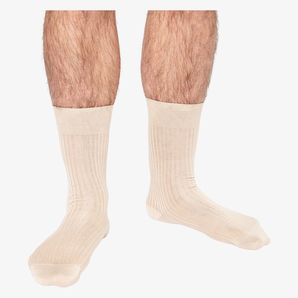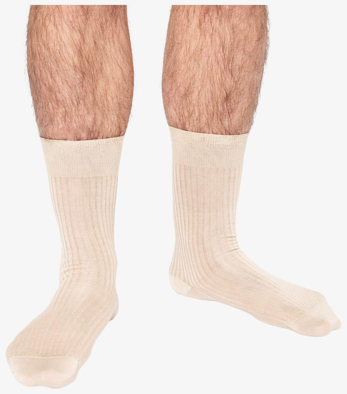 PK801 - Chaussettes coton rib 4x2 fil d'Écosse homme - beige