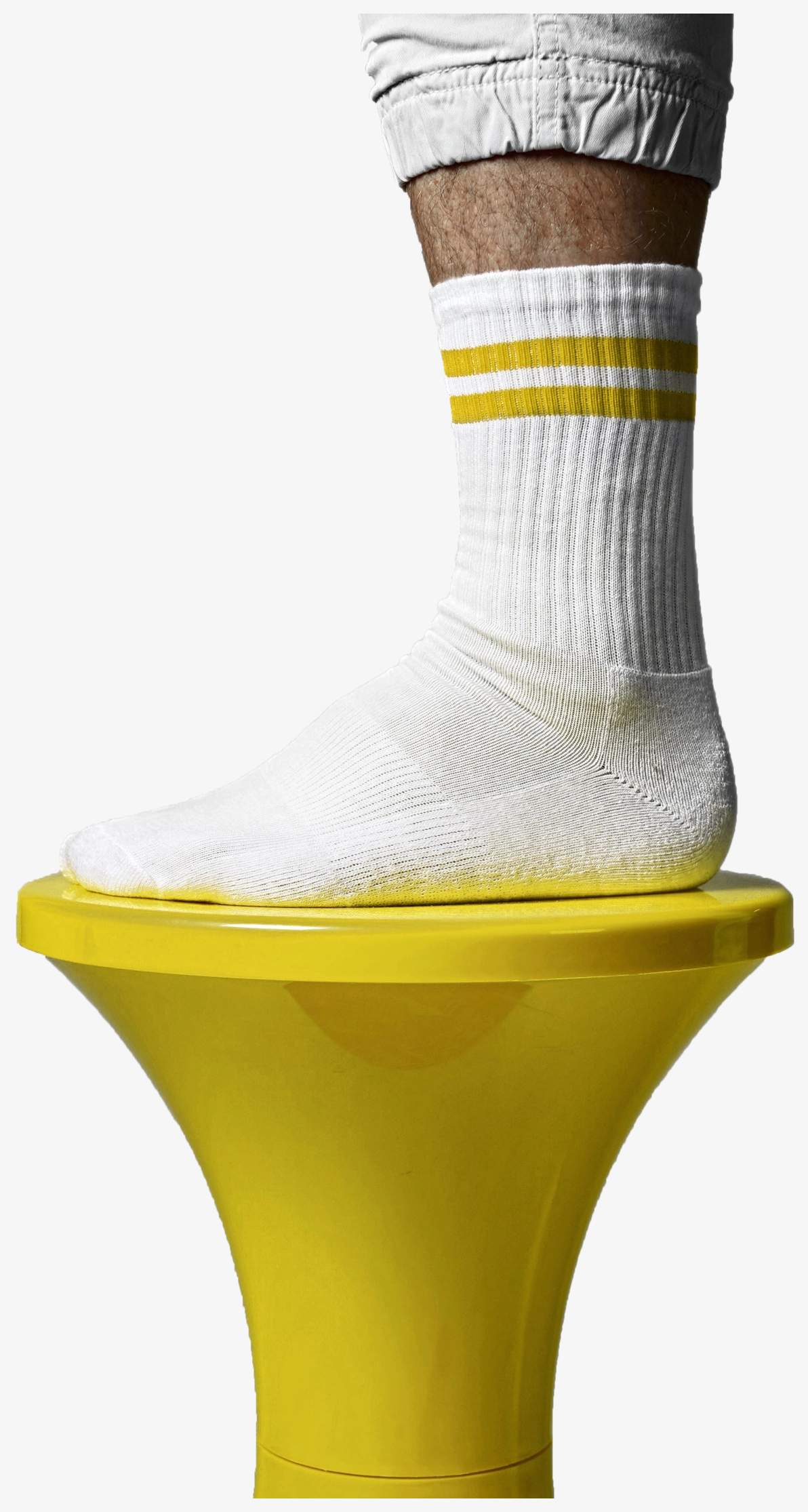 Tennis Socks er komfortable og åndbare sokker med to kontrastfarvede linjer over anklen. Fodområdet er i økologisk bomuld, mens den ribstrikkede øverste del består af genanvendt polyester, polyamid og elastan.