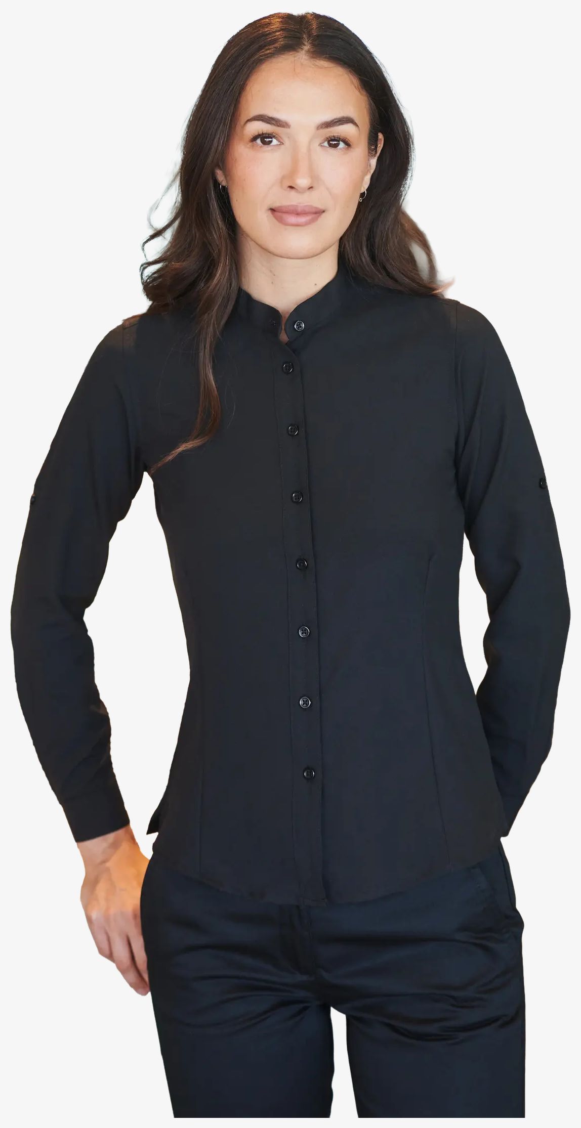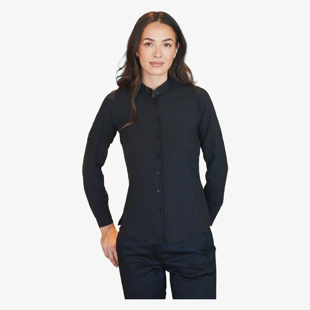 H593 - Ladies' mandarin shirt, roll-tab sleeve - black