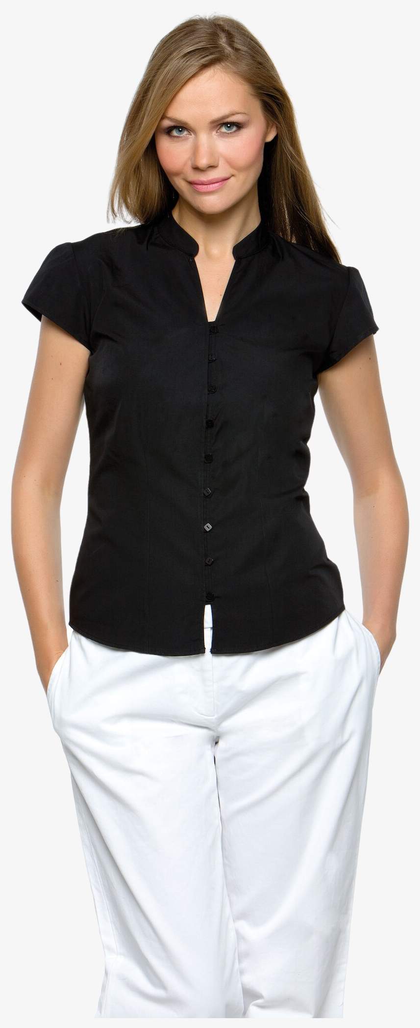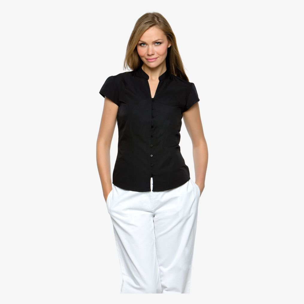 KK727 - Continental Blouse Mandarin Collar - black
