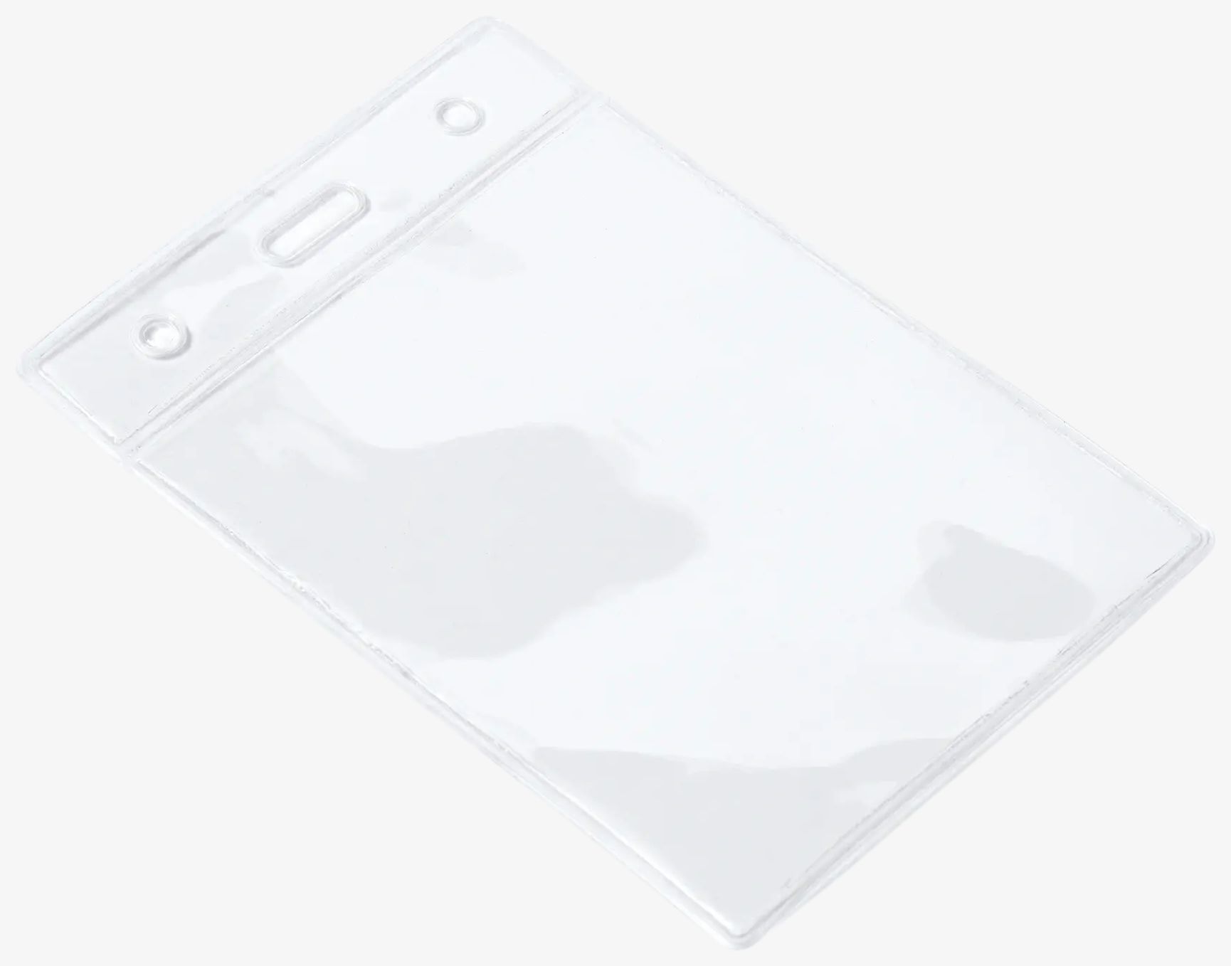 Det gennemsigtige PVC-badgeholder har et lodret design med dimensioner tilpasset synlig identificering. Den simple struktur letter indsættelse og synlighed af badges.