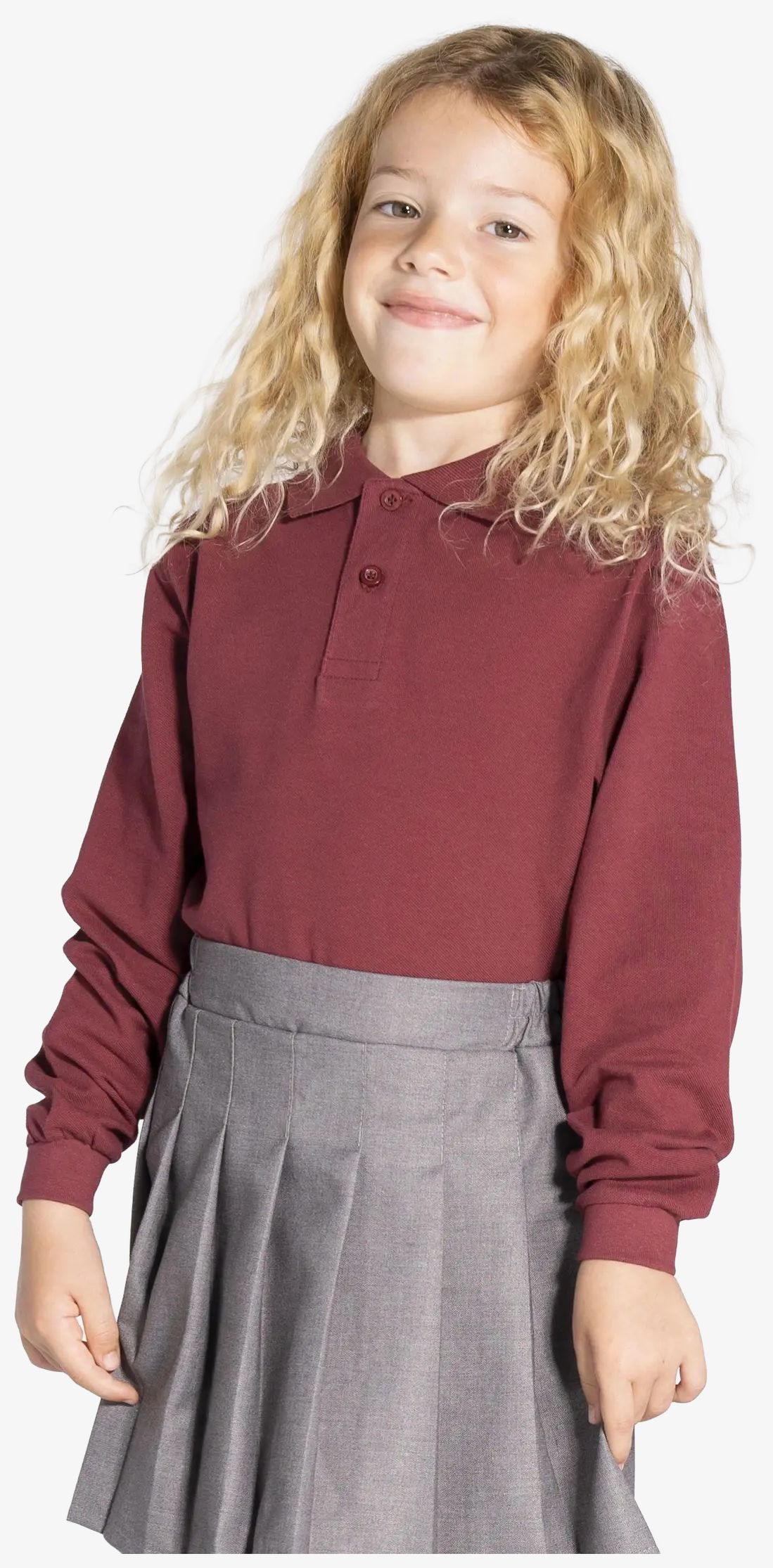 Polo pique barn med lange ærmer. Polo pique med 3 ton-i-ton knapper og sidelommer. Aftagelig etiket. Designet i forvasket kamgarn.
