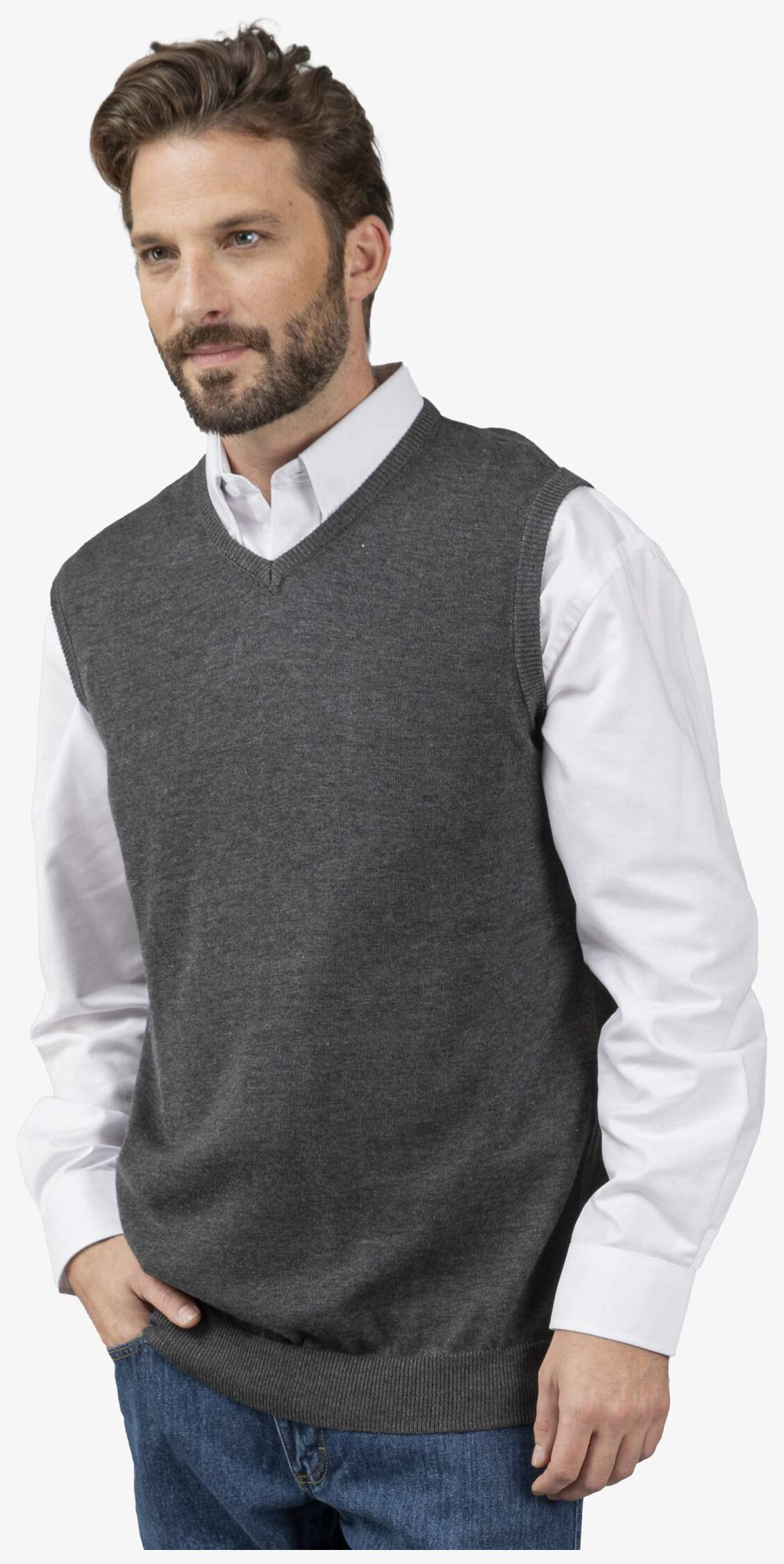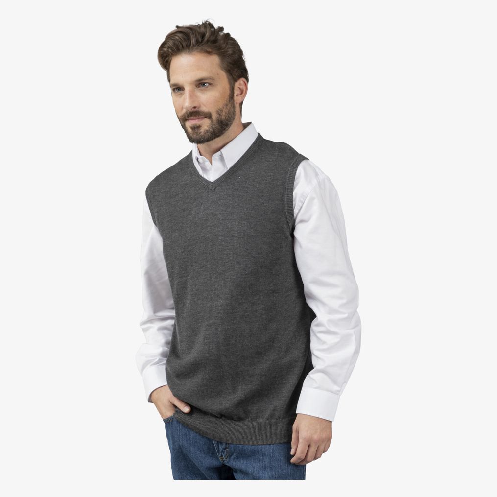 Den ærmeløse SLEEVELESS V-hals pullover pk452 bruges til lag-på-lag for at tilføje et let lag, samtidig med at armene holdes fri. Sammensætning: 50% bomuld, 50% akryl.
