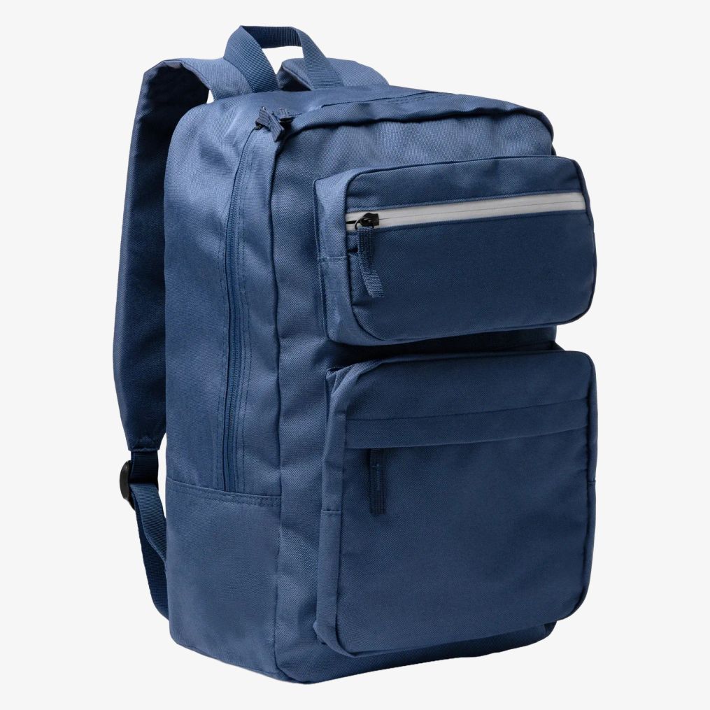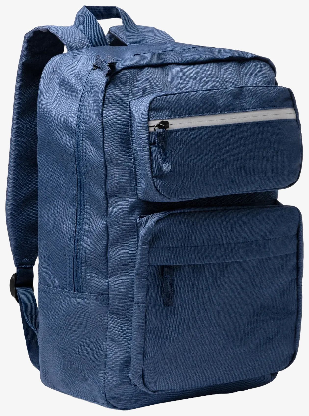 RPET 600 D rygsækken indeholder to forlommer og et indvendigt rum med en polstret lomme til 15-tommer bærbar computer. Den øverste forlomme har en vandtæt lynlås og et reflekterende bånd. Skulderstropperne er polstrede for bedre komfort.