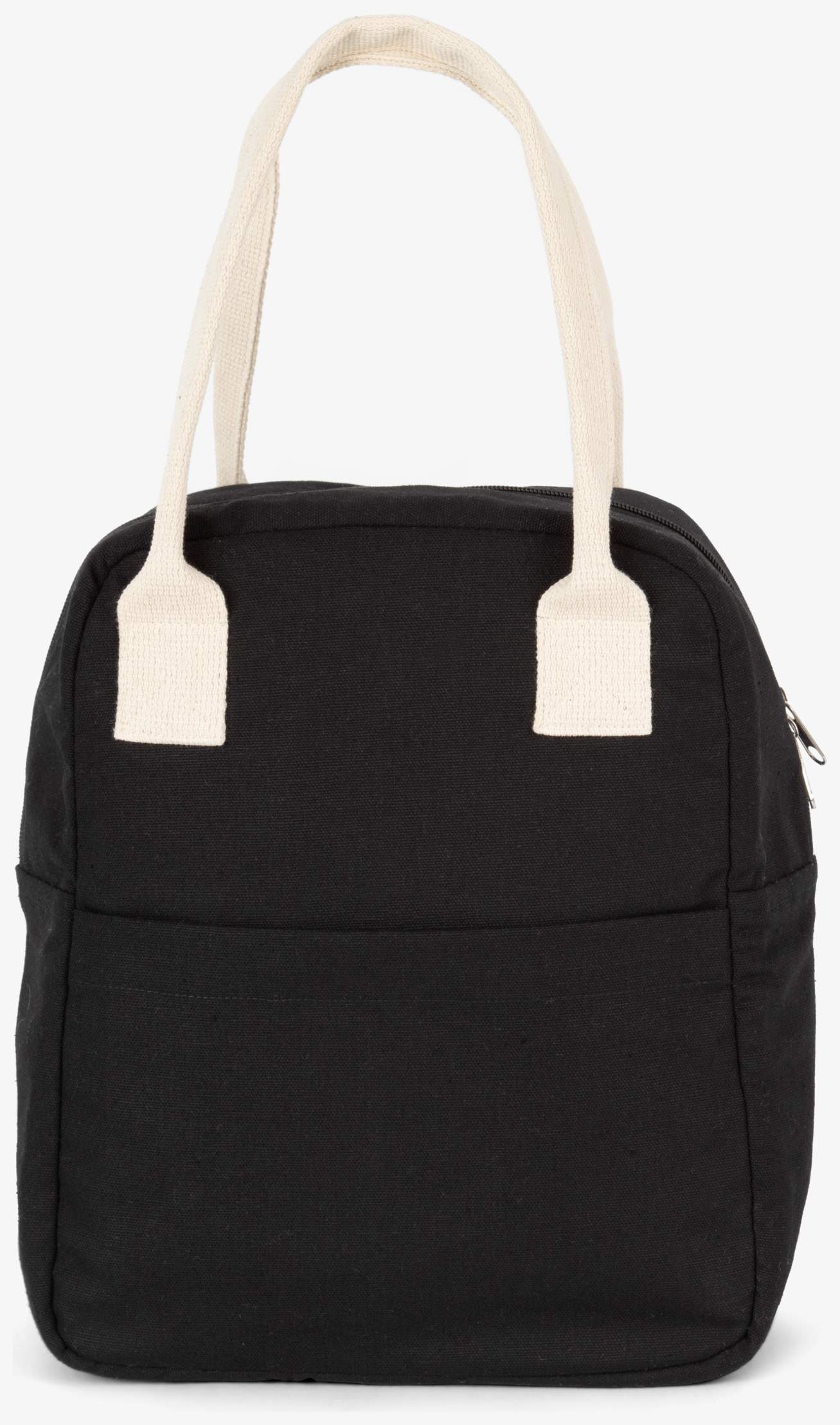 sac isotherme coton har et canvasstof på den udvendige belægning og en udvendig lomme for nem opbevaring. Den er udstyret med bomuldshanke og en lynlås for at sikre indholdet.