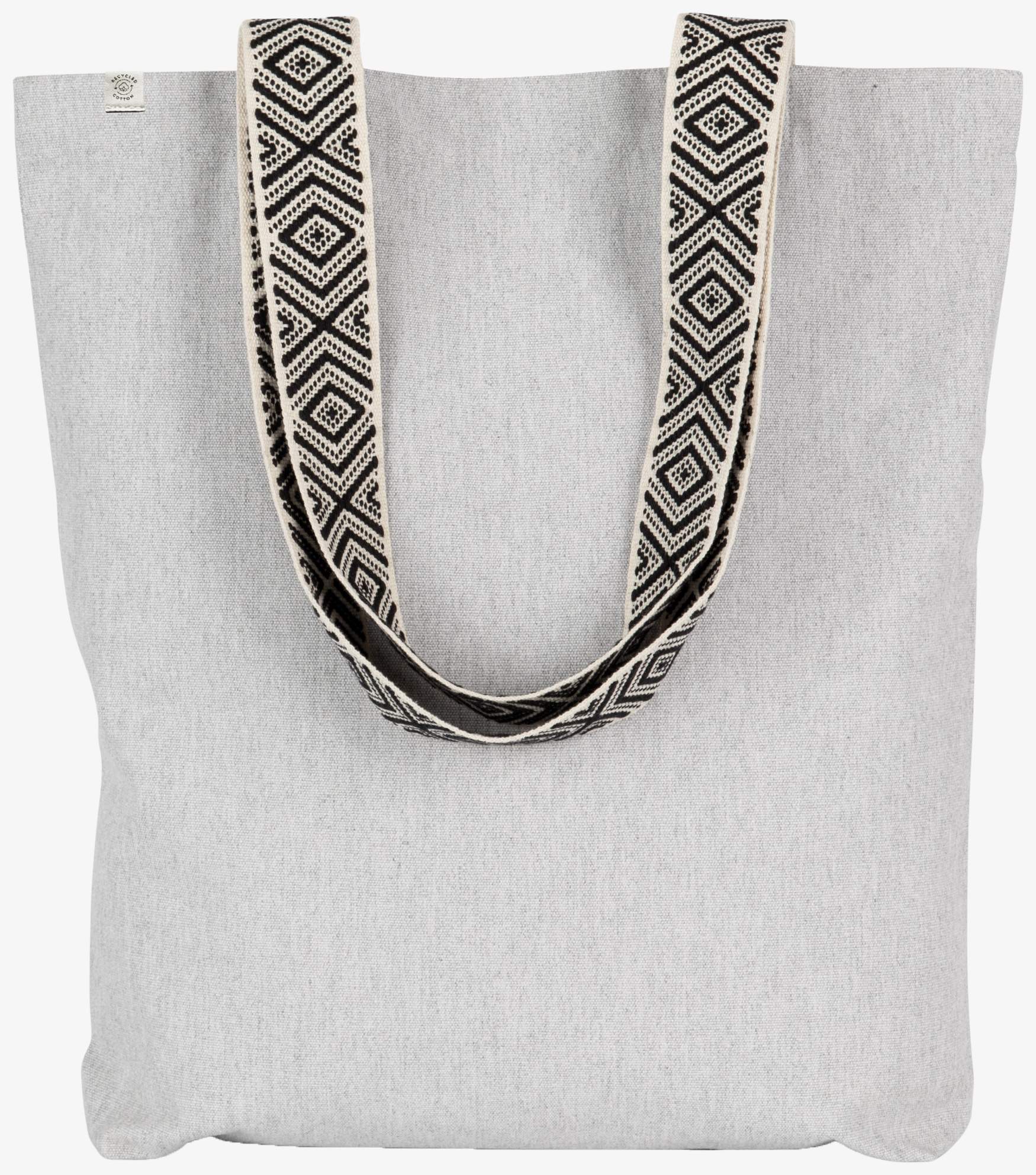 Den sac shopping recyclé indeholder en robust canvasvævning og en inderlomme til opbevaring. Dens kontrasterende håndtag måler 60 cm i længden og 4,25 cm i bredden med en kapacitet på 12 liter. Mål: 38 cm x 7 cm x 42 cm.