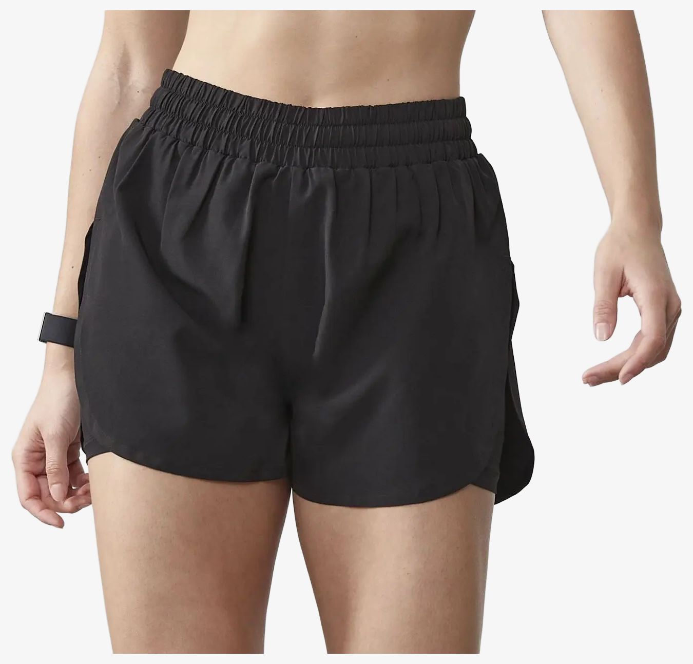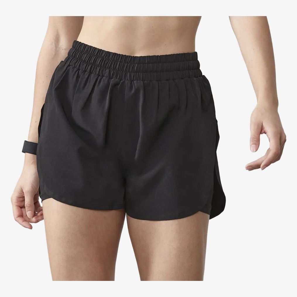 De dobbelte sportsshorts til kvinder har elastik i taljen med indvendigt snor, en lomme til mobiltelefon med medieadgang og høje sideventilationer. Under shortsen er designet til at begrænse sved. Aftagelig etiket.