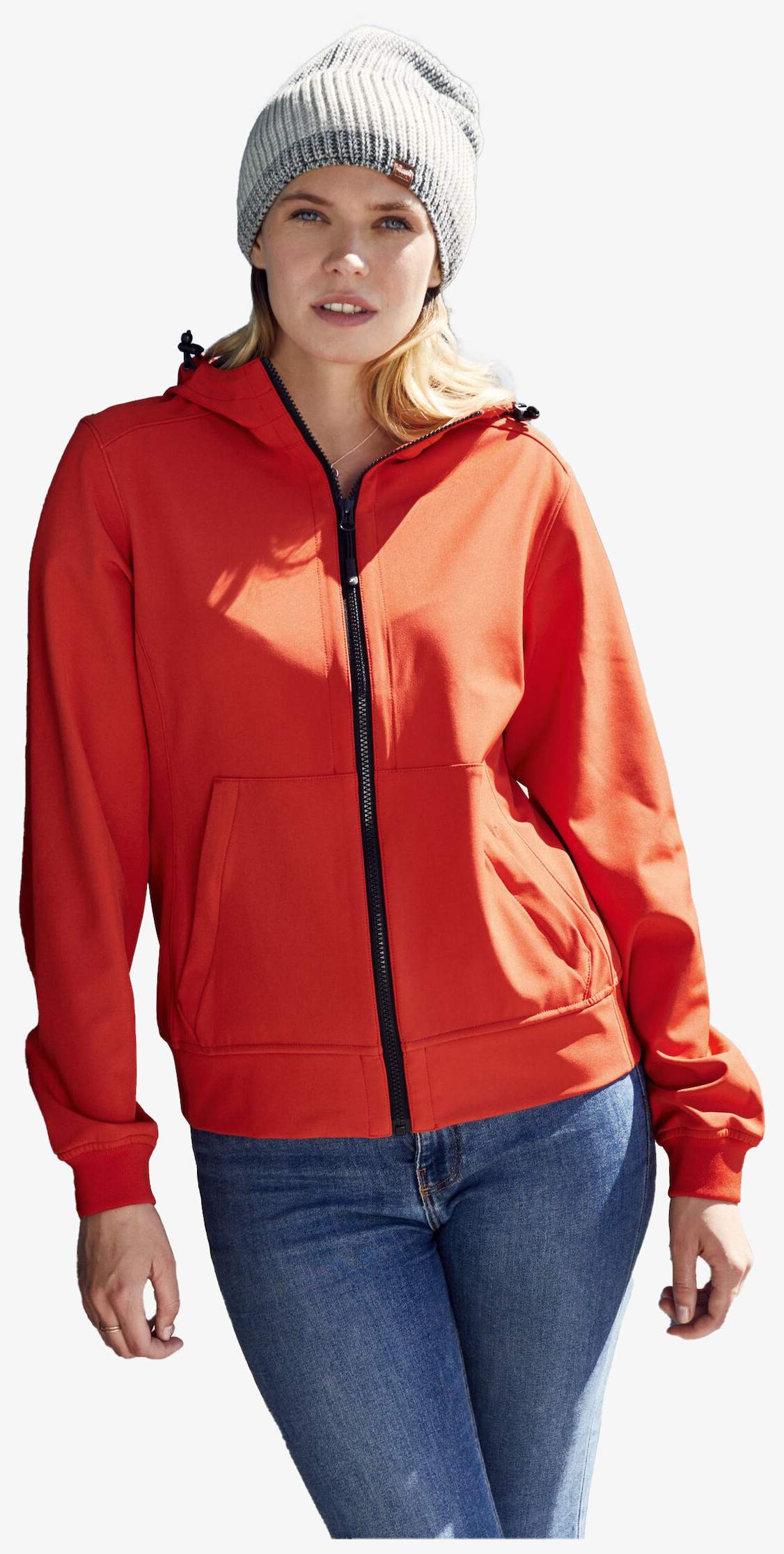 Dame softshell jakke er let figursyet med kontrastfyldt meshforing. Den er fremstillet i 2 lag med en finish, der gør den vand- og smudsafvisende. Den har fastgjort og justerbar hætte, elastiske manchetter, lynlåslomme og en indvendig lomme.