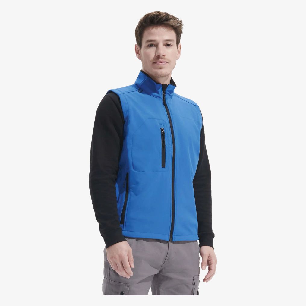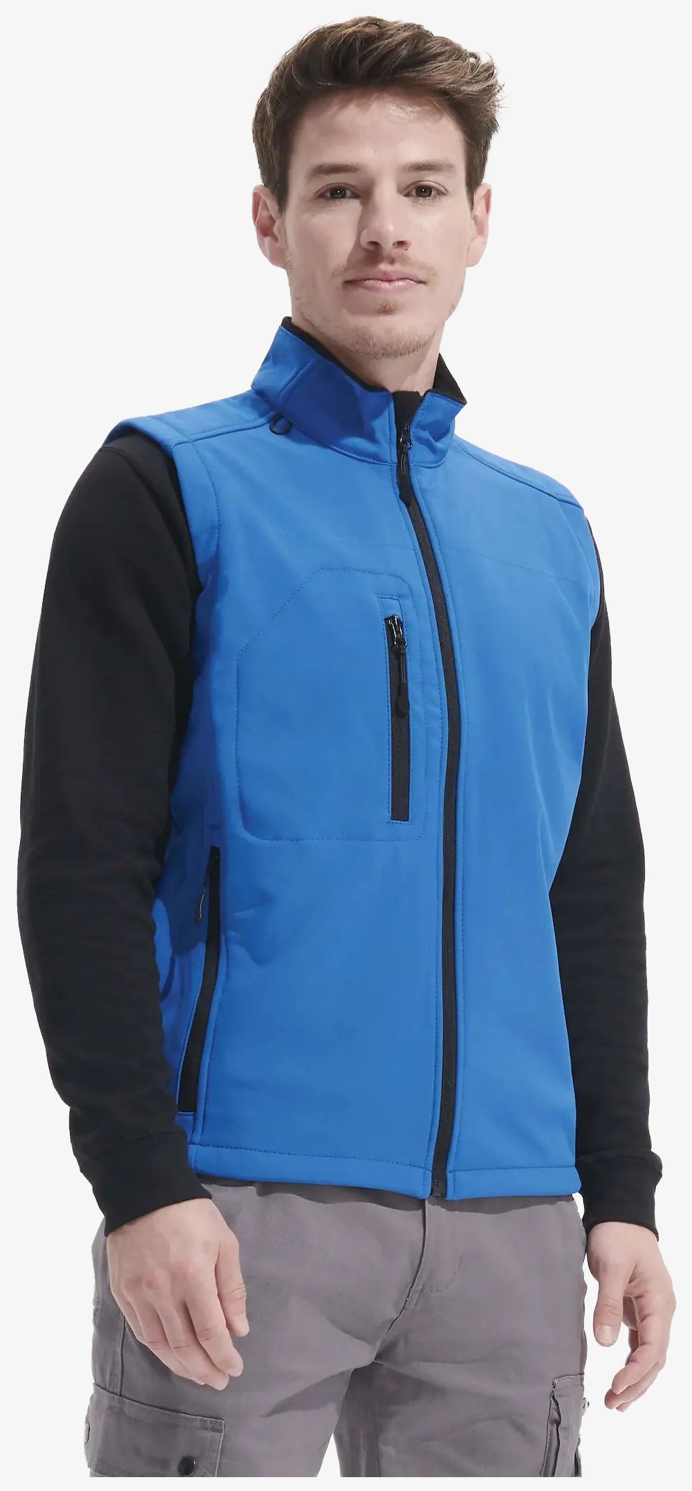 Rallye Men softshell-vest til mænd uden ærmer 46601 egnet til udendørs aktiviteter, med belægning 8000 mm og åndbarhed 1000gr/m²/dag. 2 sidelommer, 1 lynlåslomme på brystet og justerbar snøre i taljen.