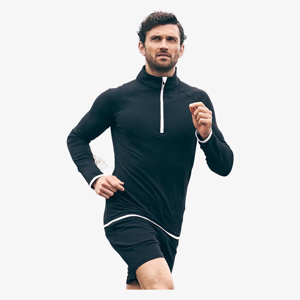 Cool ½ zip sweat i polyester og elastan kombinerer elasticitet og tætsiddende pasform. Den har en reflekterende rem bag på kraven til at holde øretelefonledningen, en kontrastbånd langs lynlåsen og raglanærmer for bevægelsesfrihed. Den oprejste krave med halv lynlås har en hakbeskytter for at begrænse irritation.