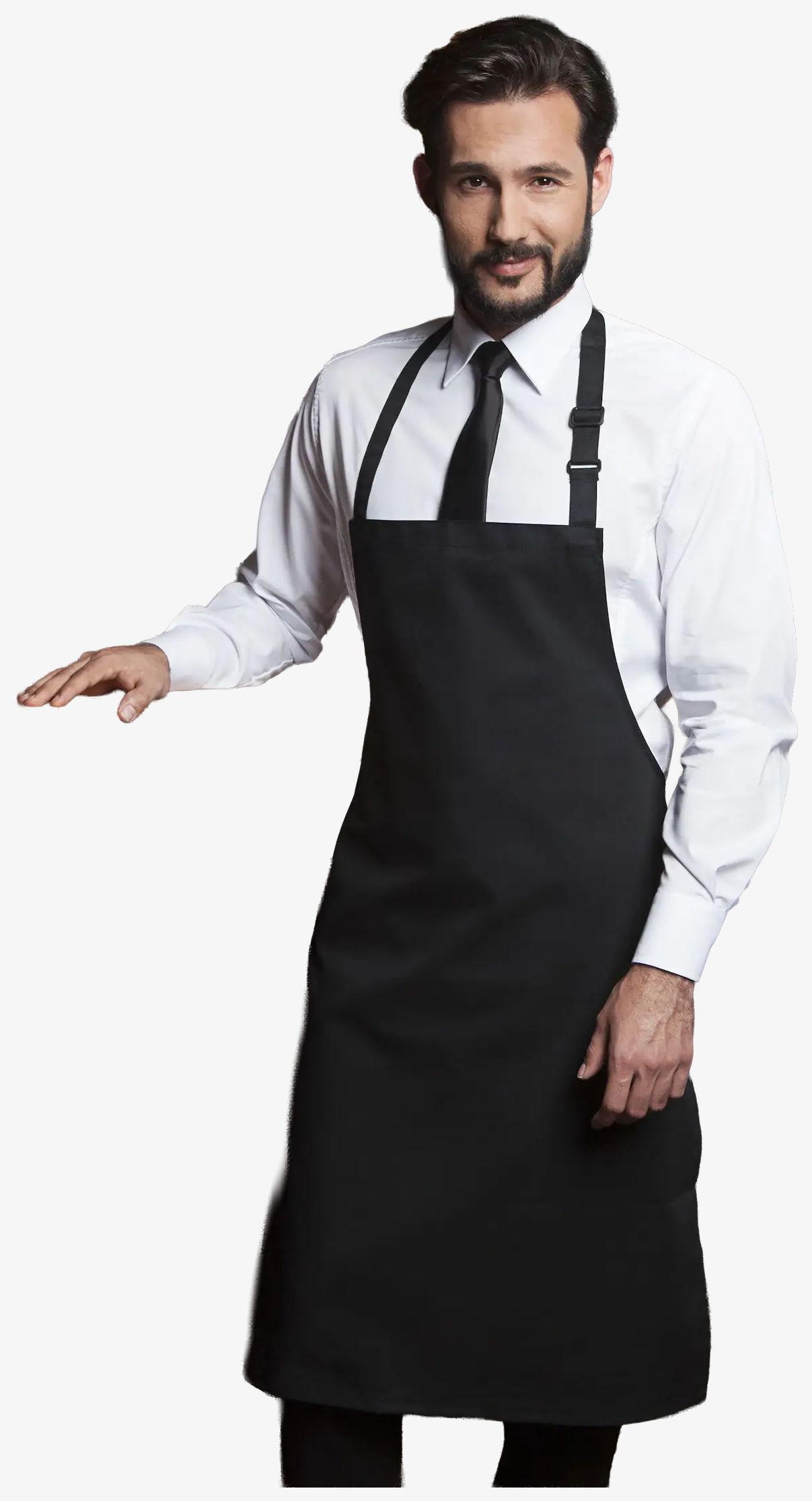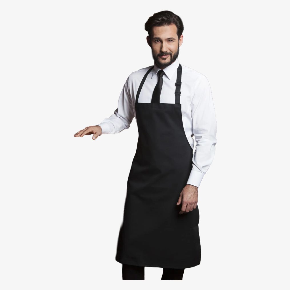 Forklæde med bryststykke og spænde er designet med remme i samme stof og justerbar længde op til 70 cm takket være spændene. Syninger er forstærkede for bedre holdbarhed.