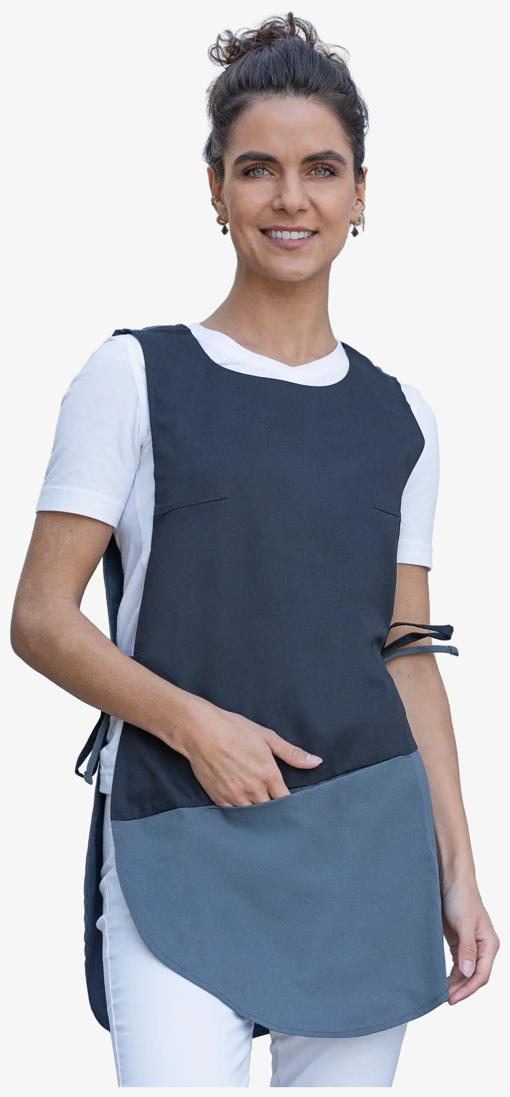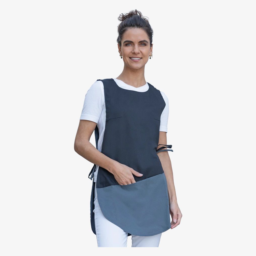 Forklædet Work smock bea anthracite er fremstillet i polyester og bomuld, med en diskret lomme og binding på siderne. Ryglængden er ca. 83 cm for størrelse I.