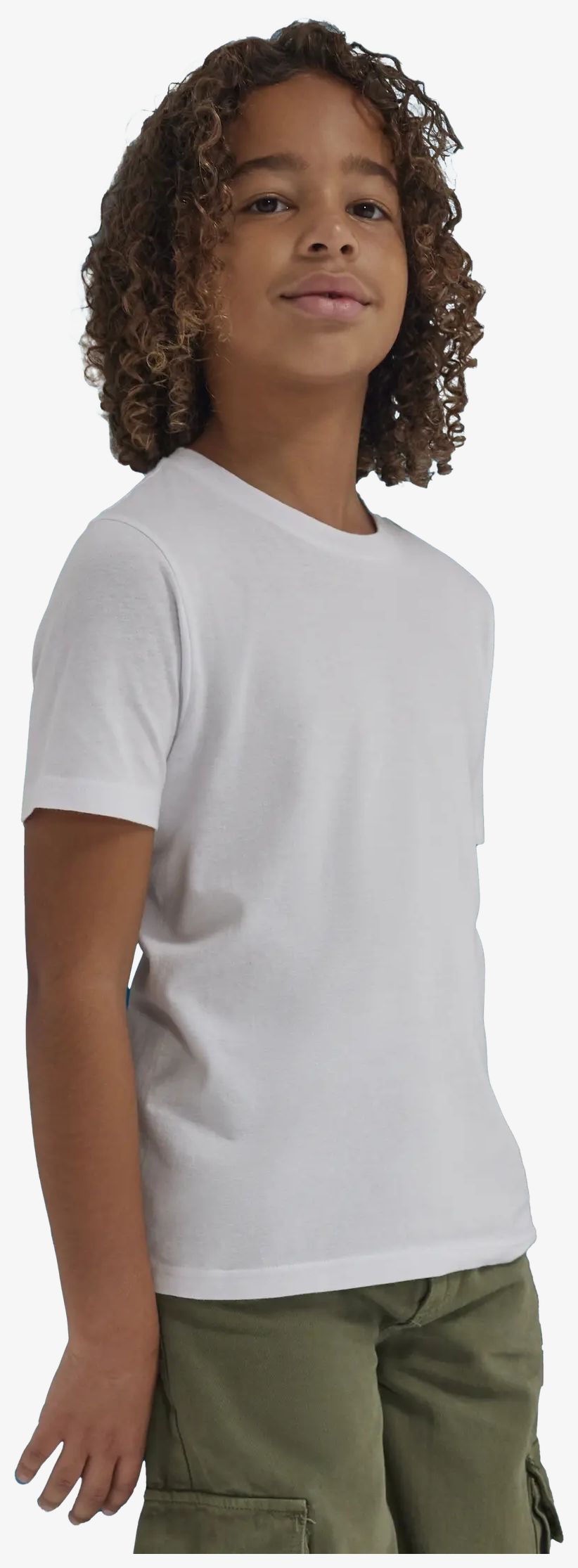 Kids #E190 bomulds-tee-shirt er kendetegnet ved et enkelt jerseystof og en rørformet konstruktion. Den har en smal halsudskæring og et forstærket halsbånd. Tee-shirten er uden mærkat for øget komfort.