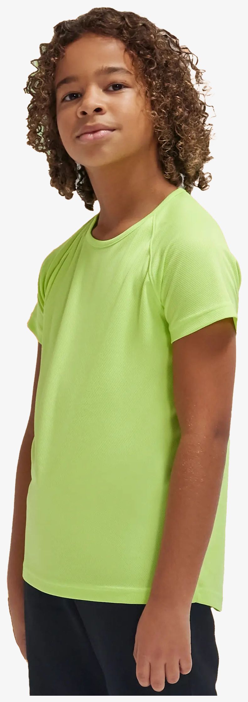 Kids Active T er en netstrikket tee-shirt, der fremmer åndbarhed og fugttransport. Den har raglanærmer og sidesømme med en design uden mærkat. Stoffet er i genanvendt polyester med hurtig tørring.