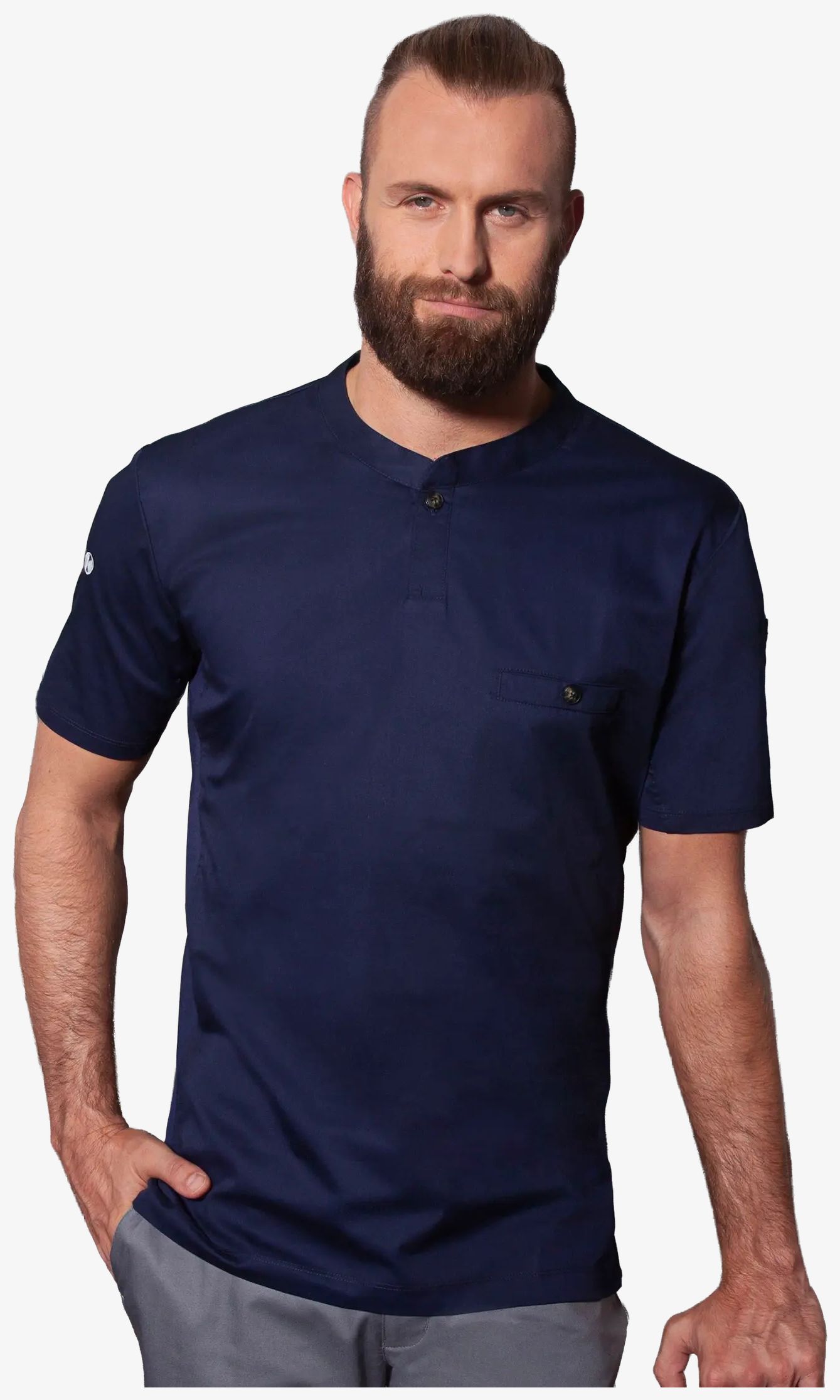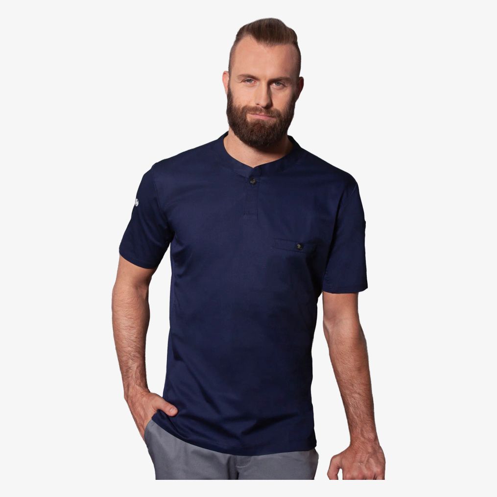 Den kortærmede arbejds-tee-shirt kombinerer en tætsiddende pasform med en ryg i polyester piqué jersey. Den er designet til at være åndbar og regulere fugt samtidig med at den modstår genstridige pletter.