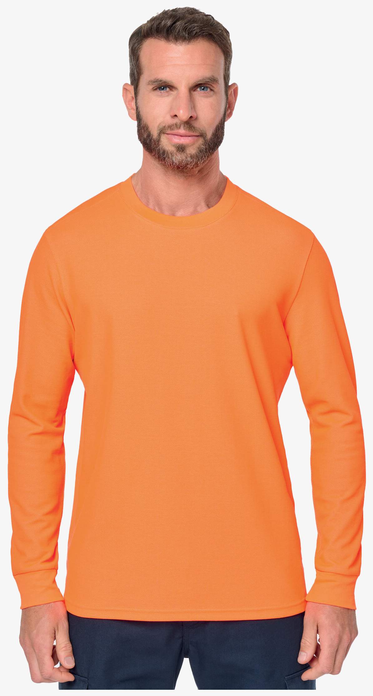 Unisex økoansvarlig tee-shirt er en langærmet unisex tee-shirt i interlock piquéstrik med komfortpasform. Lav krave og ærmer i dobbelt 1x1 rib, indvendigt nakkebånd og skulderforstærkninger for at begrænse deformering.