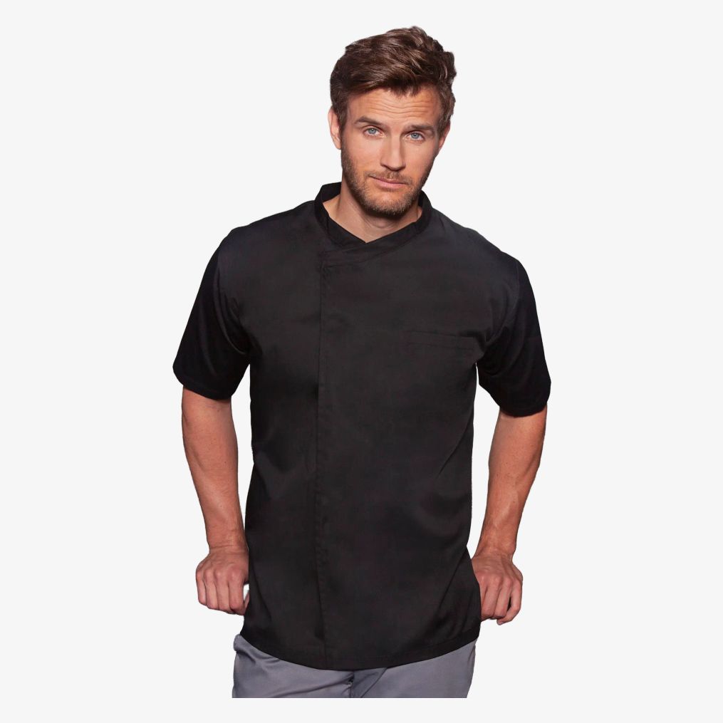 BJM3 - Short sleeve throw-over chef shirt basic - black