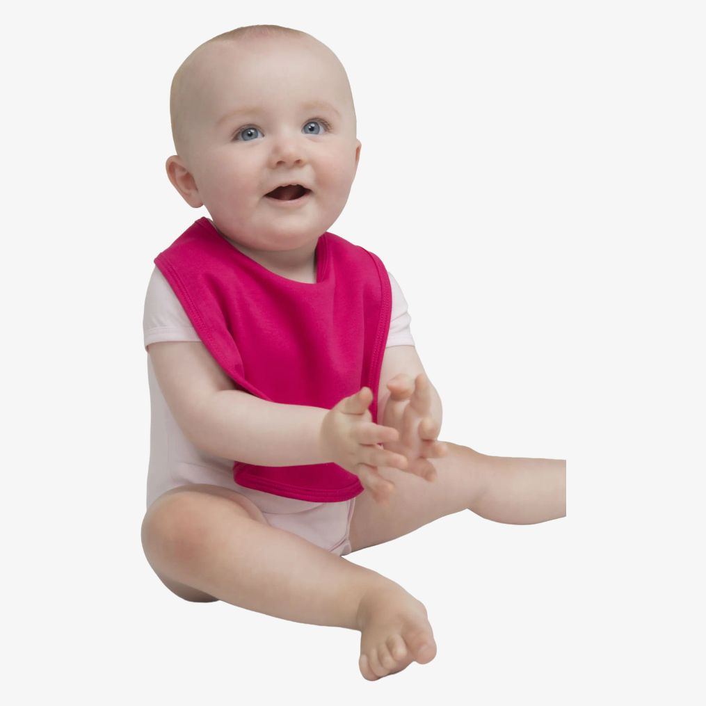 Das Bib Baby-Lätzchen bedeckt den oberen Teil der Kleidung während der Mahlzeiten oder beim Speicheln. Der Klettverschluss erleichtert das Anlegen und Abnehmen. Die Einfassung rundum sorgt für einen sauberen Abschluss.