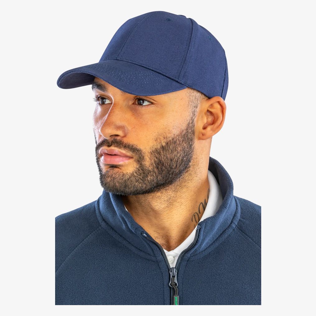 Die Recycelte Profil-Kappe ist eine Kappe mit niedrigem Profil mit vorgeformtem Schirm und verstärktem Frontpanel. Die Verstellung per Klettverschlussriemen ermöglicht eine einfache Anpassung. Gestickte Ösen fördern die Belüftung.