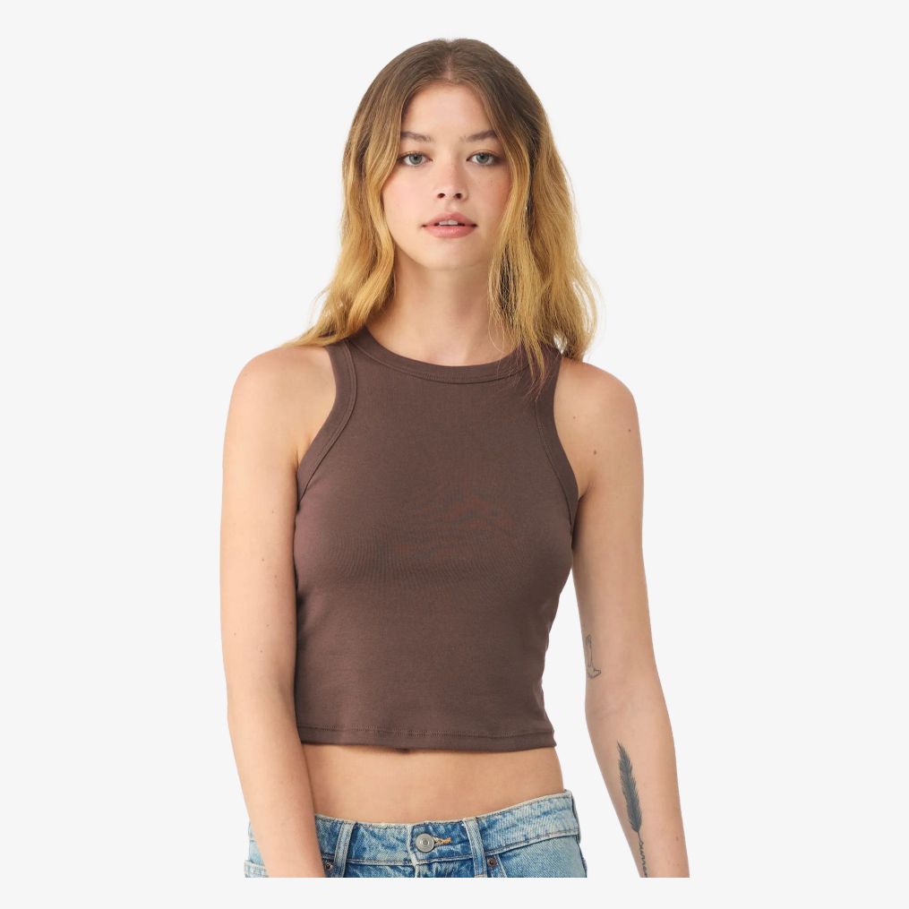 Das figurbetonte Stretch-Top Women's micro rib racer tank kombiniert eine stretchige, enganliegende Passform mit Seitennähten und Racerback. Die Zusammensetzung beträgt 52% gekämmte ringspun Baumwolle Airlume und 48% Polyester, außer für die Farbe Athletic Heather, die 90% Baumwolle und 10% Polyester enthält.