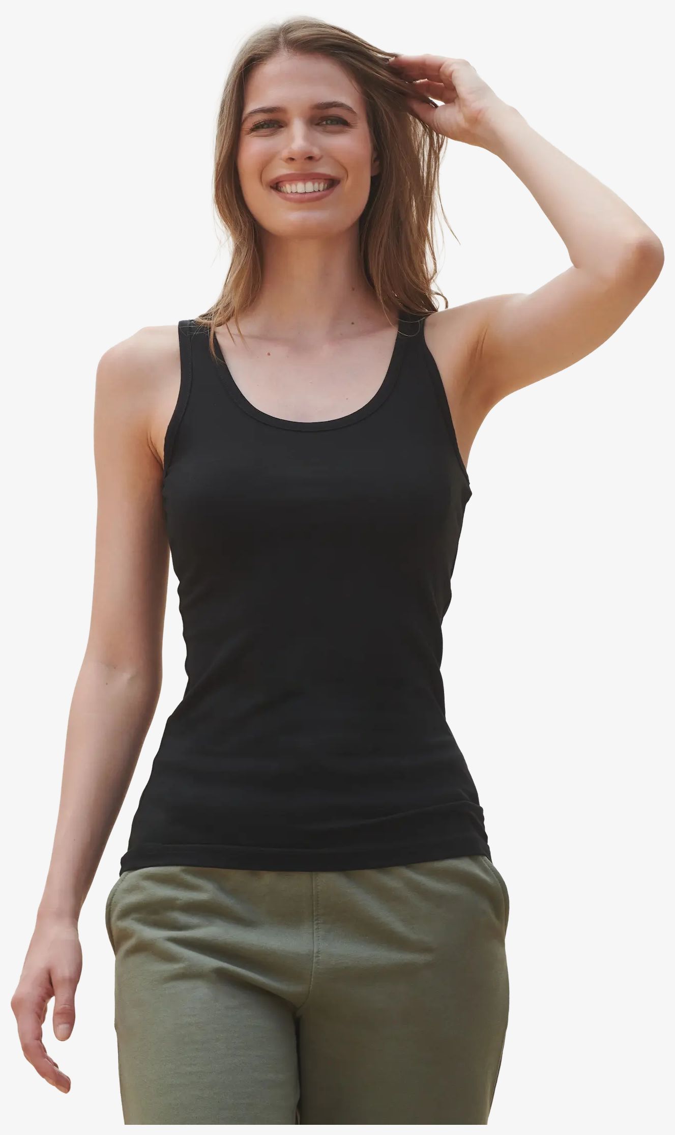 Das Stretch-Damenshirt verfügt über einen modernen langen, anliegenden Schnitt mit Seitennähten. Der Rundhalsausschnitt und die Armausschnitte sind aus demselben Stoff gefertigt. Das Etikett ist abnehmbar.