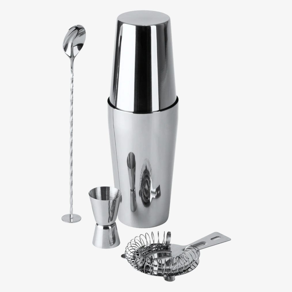 Das Cocktailset ist aus Edelstahl 304 gefertigt. Es beinhaltet ein Messmaß, einen 580 ml Shaker, ein Sieb Rührstab und eine Tragetasche. Die Präsentation erfolgt in einer Designbox.