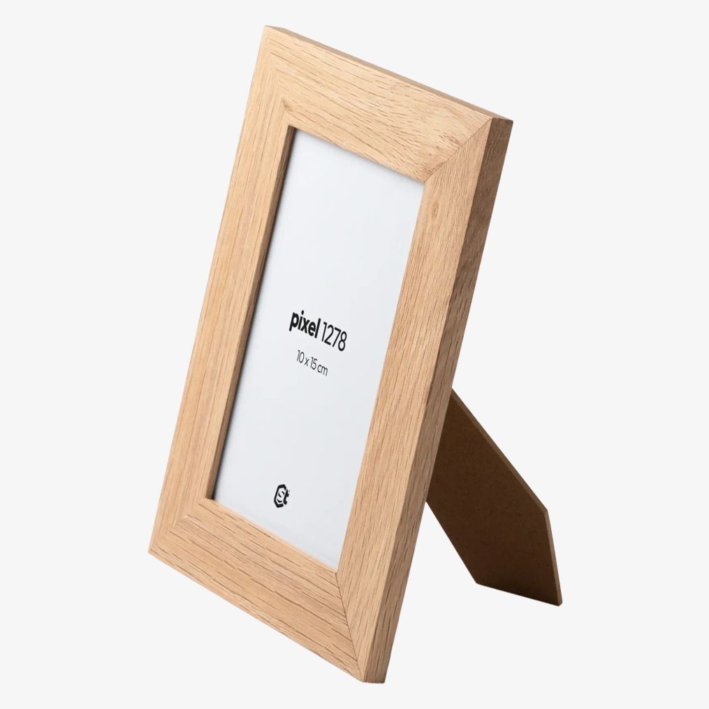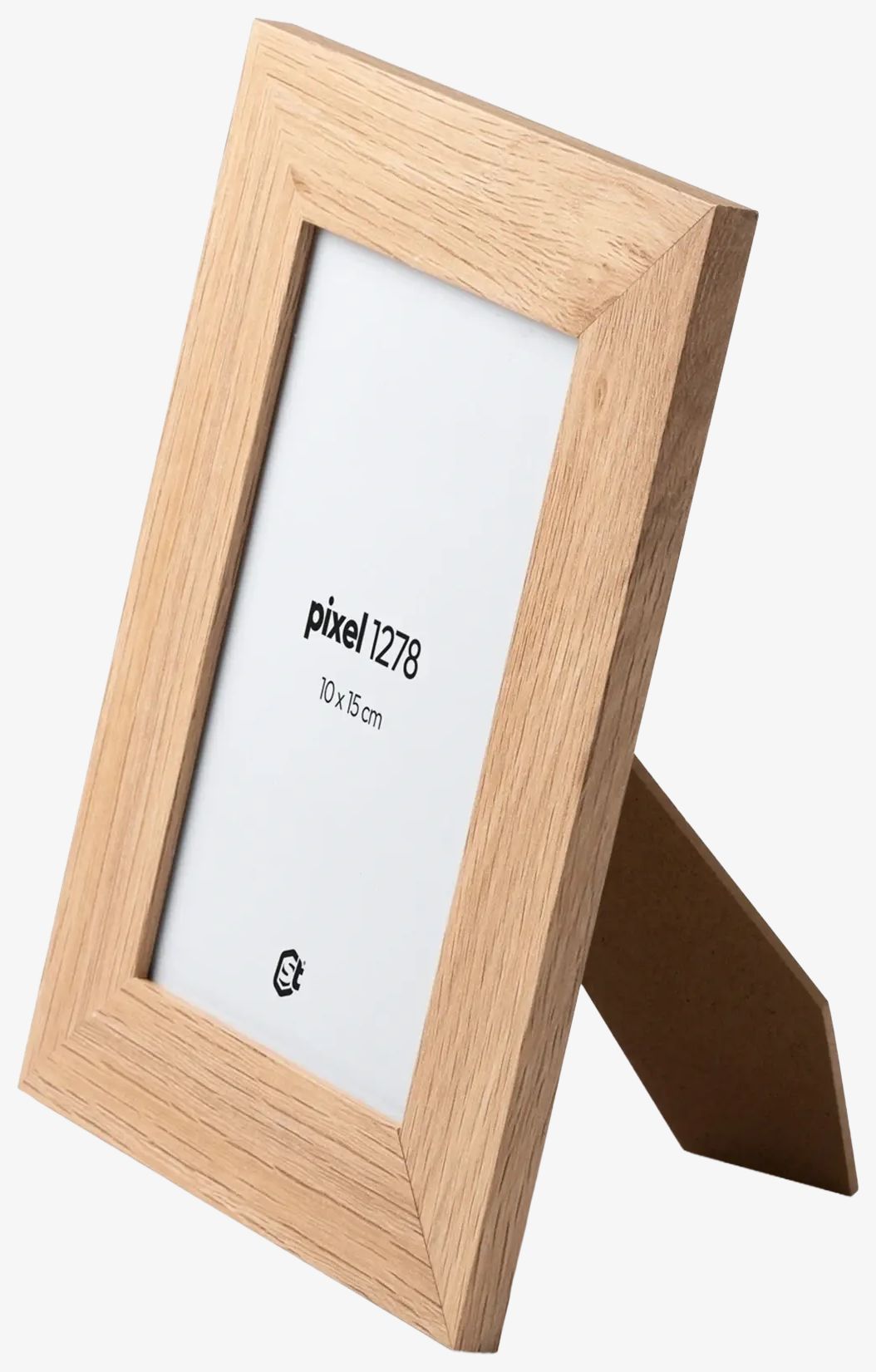 Der Bilderrahmen PIXEL ist für Fotos im Format 10 x 15 cm mit horizontaler oder vertikaler Ausrichtung ausgelegt. Er kombiniert Holzfaser und Glas für eine schlichte und funktionale Präsentation.