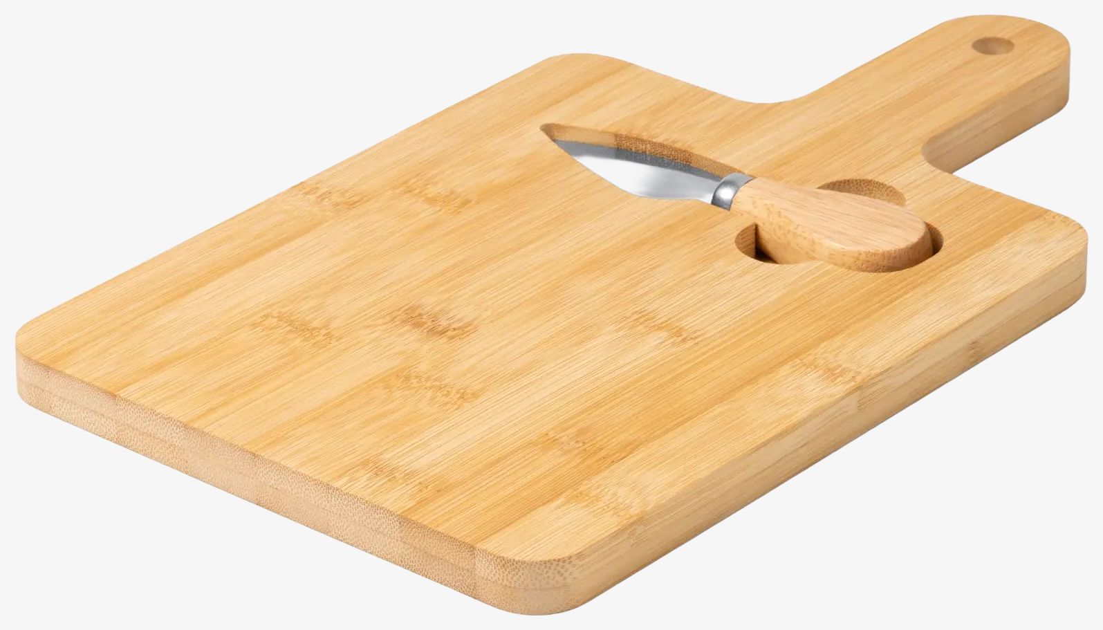 Das Bambus-Brett ist mit einem Griff für einfachen Halt ausgestattet. Es enthält ein Käsemesser aus Edelstahl, das für Schneiden und Servieren ausgelegt ist.