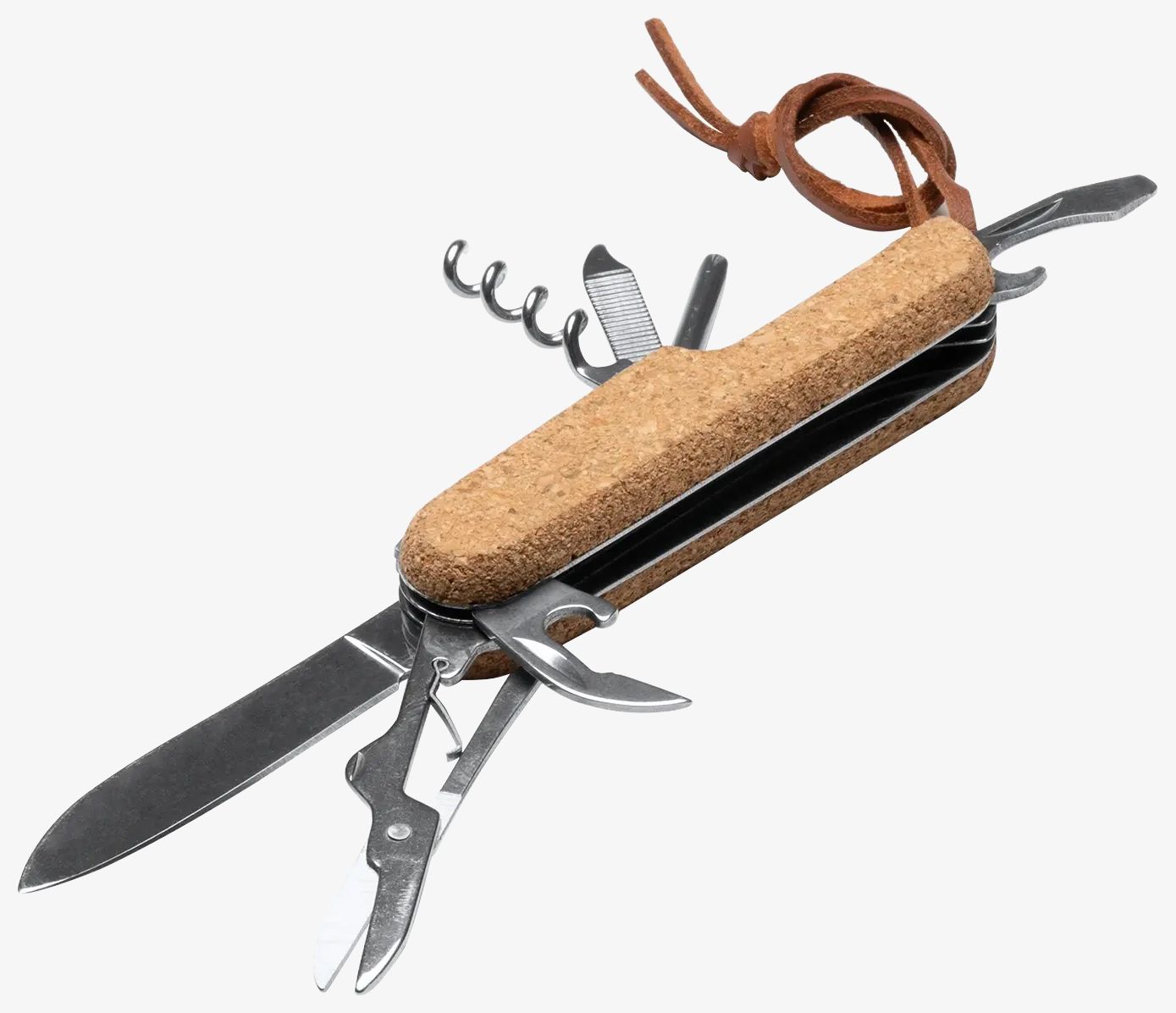 Das vielseitige Werkzeug ROMAN vereint neun verschiedene Funktionen in einem kompakten Format für vielfältige Anwendungen. Der Griff aus Kork sorgt für einen angenehmen Halt. Die Herstellung kombiniert Edelstahl und erneuerbare Materialien.