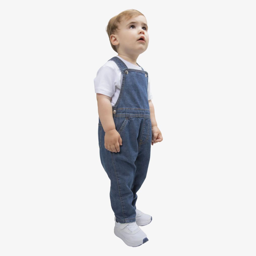 Die Denim Dungarees Baby-Latzhose aus verwaschenem Denim eignet sich mit ihrem praktischen Schnitt und den Druckknopföffnungen für den täglichen Gebrauch. Die verstellbaren Träger erleichtern die Anpassung, während die Seitentaschen das Ganze ergänzen.