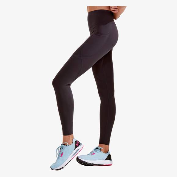 Die taillierte Leggings für Damen verbindet einen weichen und elastischen Stoff mit einem breiten Bund für festen Halt. Sie verfügt über positionierte Steppnähte für eine optimale Passform, Taschen an beiden Beinen und thermoverschweißte Säume.