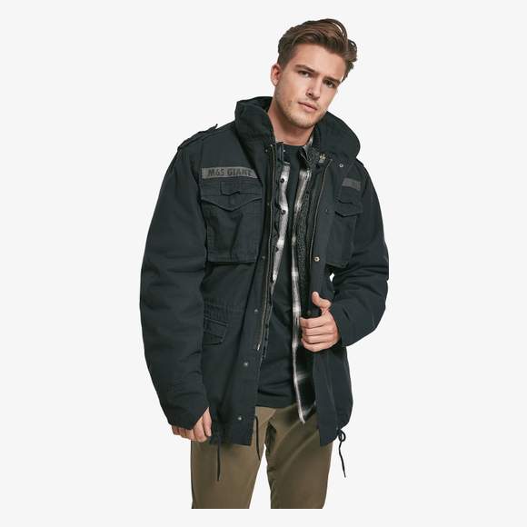 Die veste M65 Giant verbindet eine außenliegende Jacke aus gewaschenem Baumwollstoff mit einem abnehmbaren, gesteppte Nyloninnenfutter, das per Reißverschluss zu lösen ist. Die Innenjacke besitzt ein abnehmbares, warmes Plüschfutter. Sie kann allein als Übergangsjacke getragen werden. Die Baumwollkapuze ist verborgen und mit einem Kordelzug sowie Druckknöpfen an der Schulter versehen.