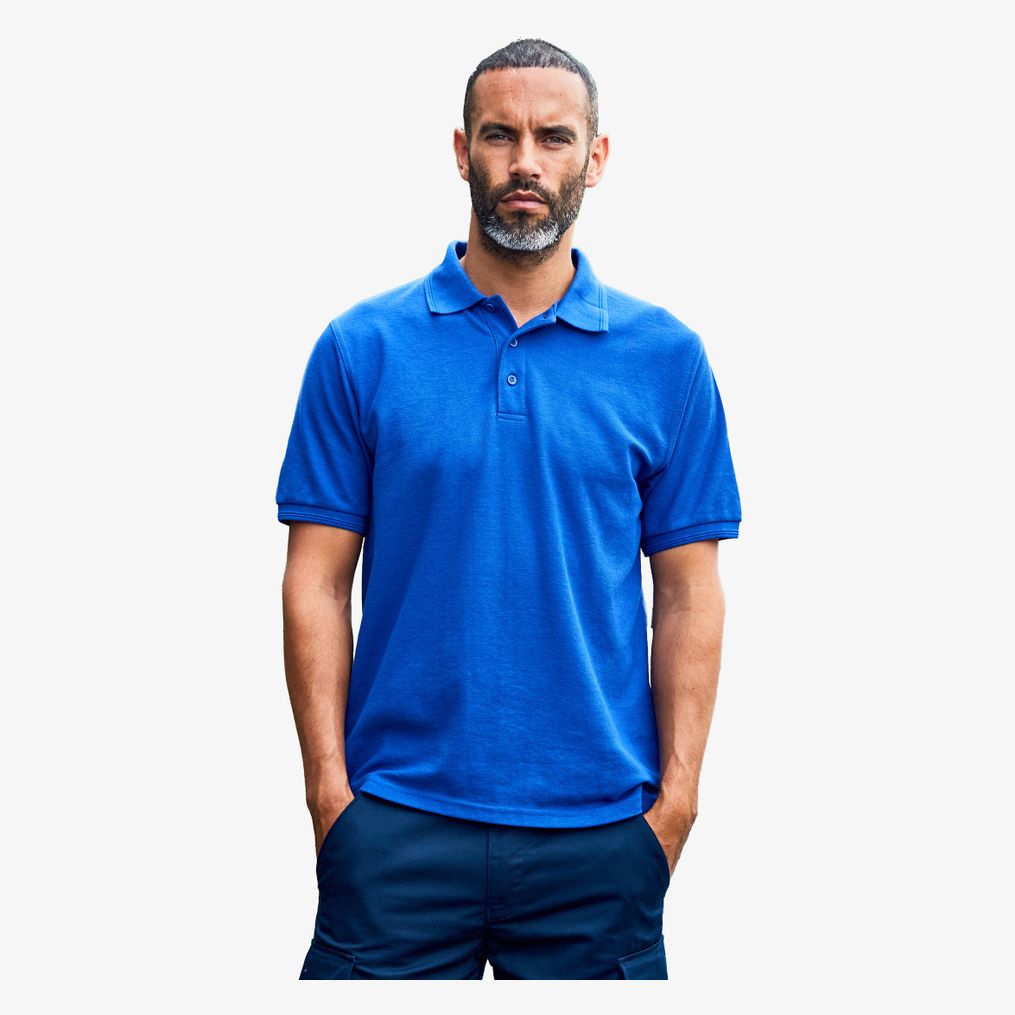 Das Polo Pro premium ist aus einem dicken Stoff gefertigt, der Baumwolle und Polyester für eine robuste Struktur kombiniert. Es verfügt über einen engen Kragen und Manschetten aus gleichfarbigem Ottoman-Stoff sowie eine Leiste mit drei einfarbigen Knöpfen und einem Ersatzknopf. Seitliche Schlitze sorgen für zusätzliche Beweglichkeit.