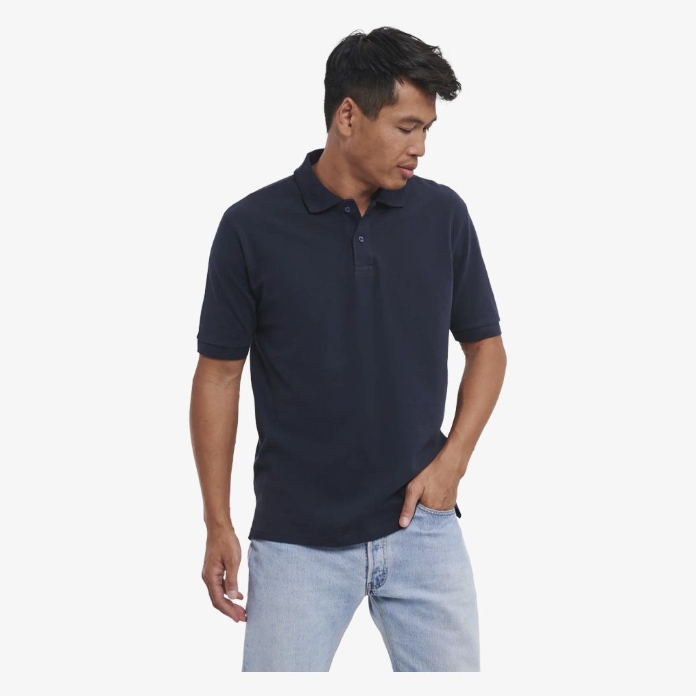 Das klassische Herrenpolo besteht aus 100% gekämmter Baumwolle. Es umfasst ein Schmutzband, eine 2-Knopf-Leiste in Ton-in-Ton, einen flachgestrickten Besatz und eine Schulterverstärkung für besseren Sitz. Doppelte Nähte und seitliche Schlitze ergänzen die Bauweise.