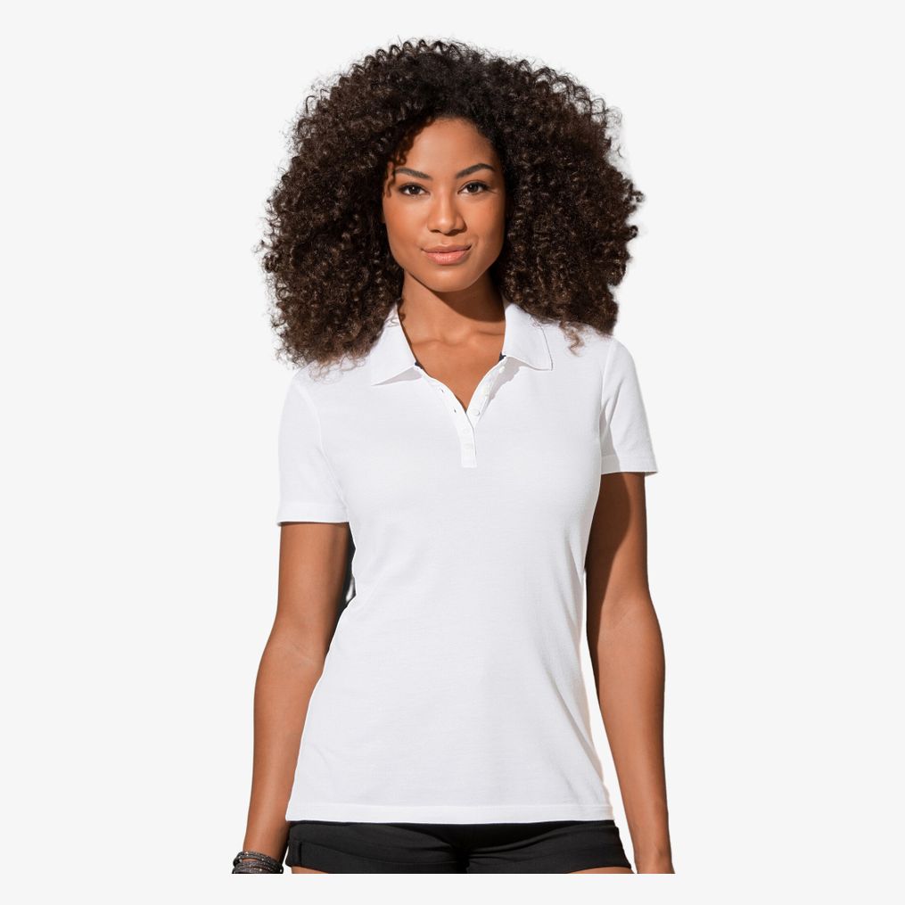 Das Polo Hanna st9150 zeigt eine feminine Passform aus gekämmter Baumwolle mit hochwertigem Piqué. Es verfügt über einen Rippkragen, 5 tonige Knöpfe und eine schmale Knopfleiste. Ärmelloser Rippstrick und ein kontrastierendes Chevron-Band am Kragen fügen spezifische Details hinzu.