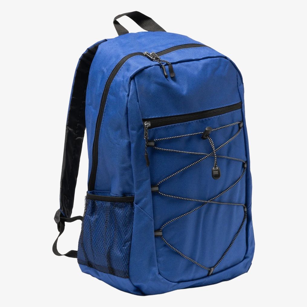Der Rucksack MISURI aus Polyester 600 D verfügt über ein vorderes Hauptfach mit Reißverschluss, einen elastischen Kordelzug vorne und seitliche Netztaschen. Rücken und Schulterriemen sind gepolstert für besseren Tragekomfort. Das Fassungsvermögen beträgt 18 L.