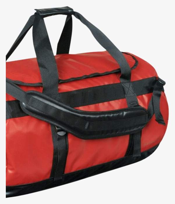 Der Waterproof Gear Bag ist eine Sporttasche für den Transport persönlicher Gegenstände, mit verstellbarem Schultergurt und seitlichen Tragegriffen. Ein großer Reißverschluss ermöglicht den Zugriff auf das Hauptfach. Eine innenliegende Reißverschluss-Netztasche und ein Fach für die Ausweiskarte ergänzen die Organisation.