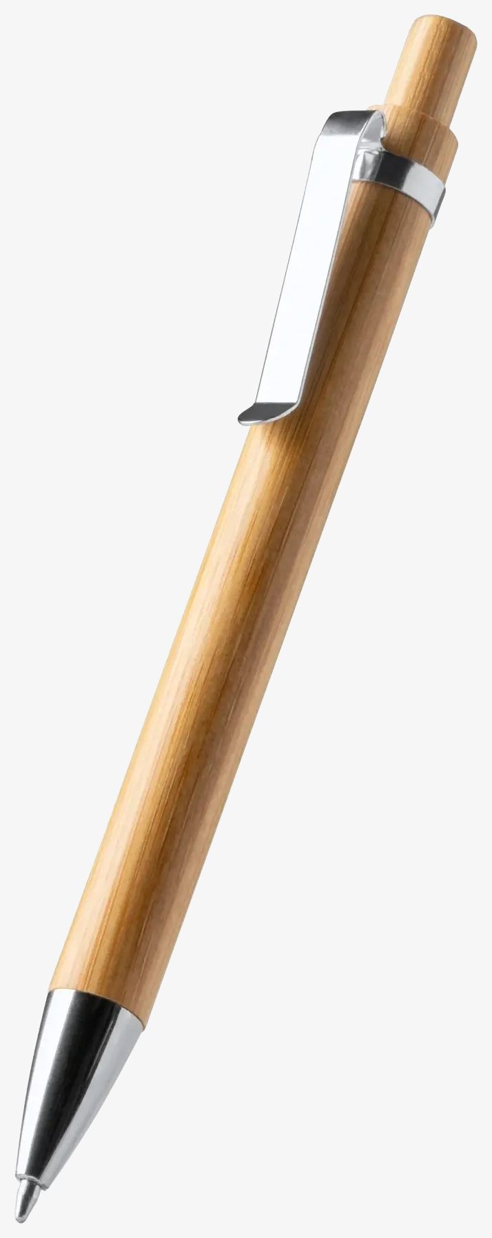 Der Kugelschreiber aus Bambus verfügt über Metall-Details und verwendet blaue Tinte. Hauptbestandteil ist Bambus.