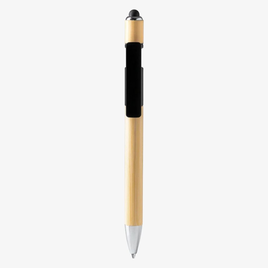 Der Kugelschreiber HETING verfügt über eine manuelle Kreisel-Funktion und eine integrierte Smartphone-Halterung. Er besitzt eine Touchpen-Spitze mit Metallfinish und verwendet blaue Tinte.