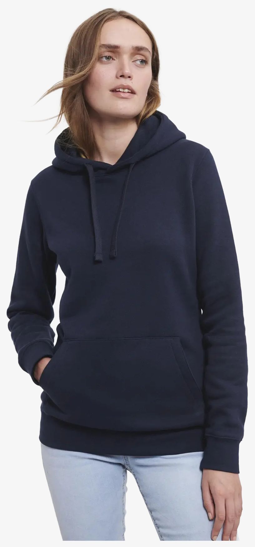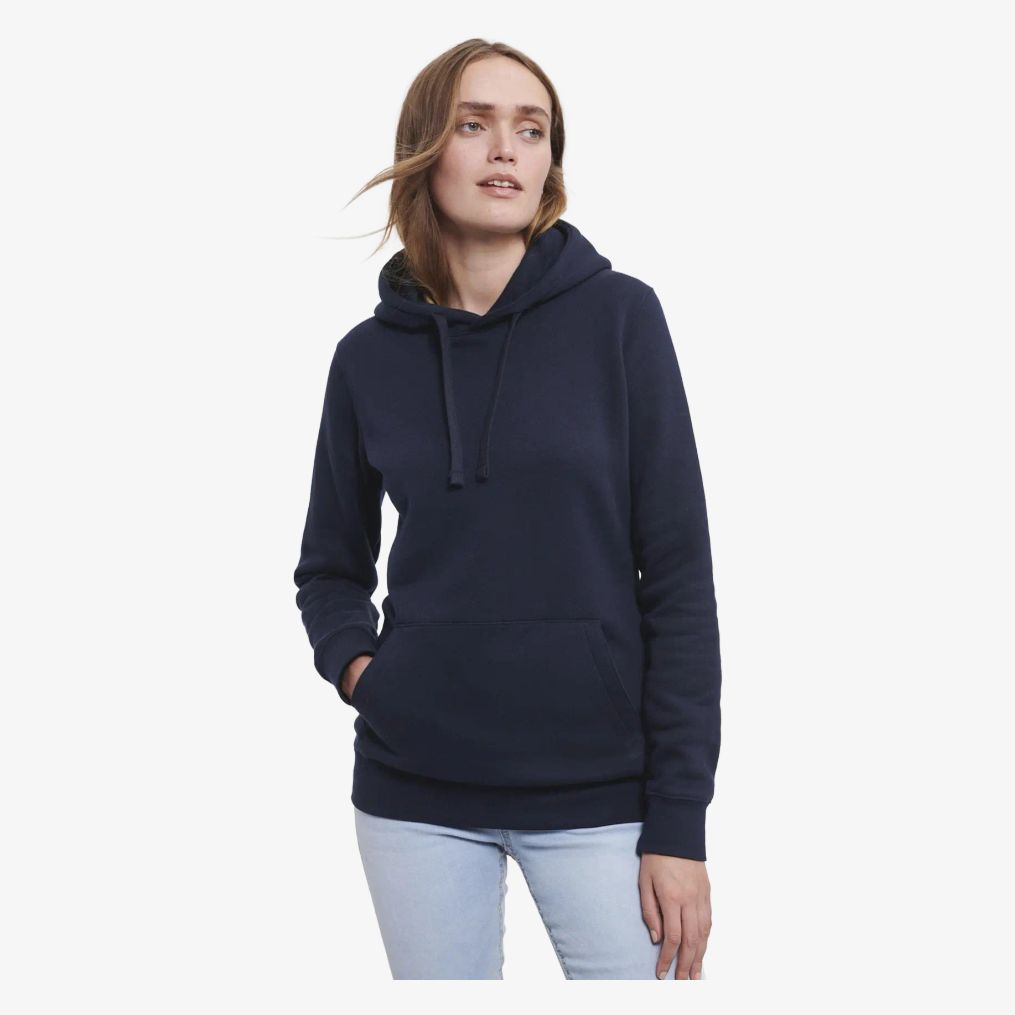 Der Authentic Sweat capuche femme verbindet 80 % ringgesponnene Baumwolle gekämmt und 20 % Polyester. Er verfügt über eine gefütterte Kapuze, eine flache Kordel, eine Kängurutasche und vordere Schulternähte. Die Armausschnitte sind versäubert und die Ärmel mit Bündchen versehen.