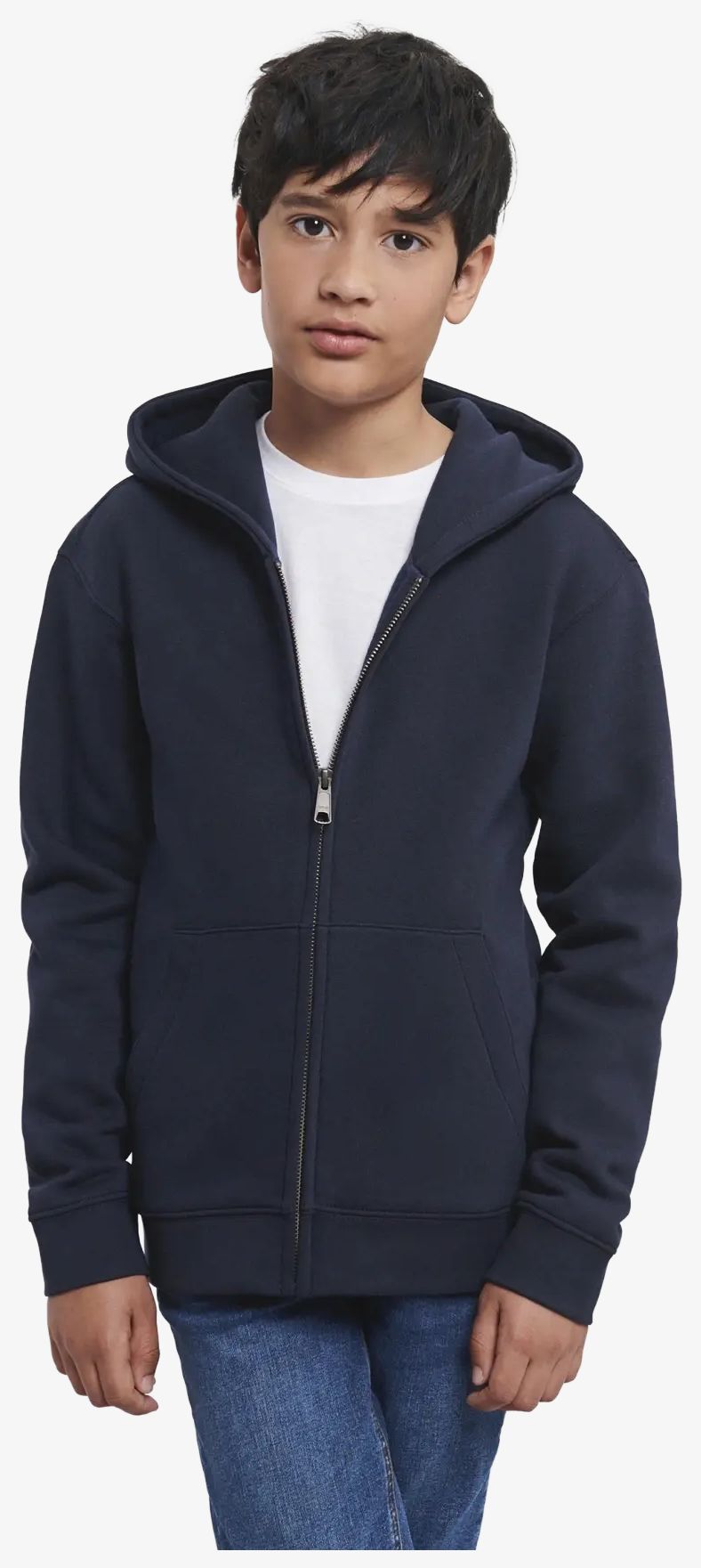 Der Kinderkapuzenpullover Authentic besteht aus 80 % gekämmter Ringgesponnener Baumwolle und 20 % Polyester in einem dreilagigen Stoff. Er verfügt über eine gefütterte Kapuze ohne Kordel und einen Nahtband mit Fischgrätmuster. Der Verschluss ist ein Reißverschluss in antikem Silber. Aufgesetzte Taschen befinden sich vorne.