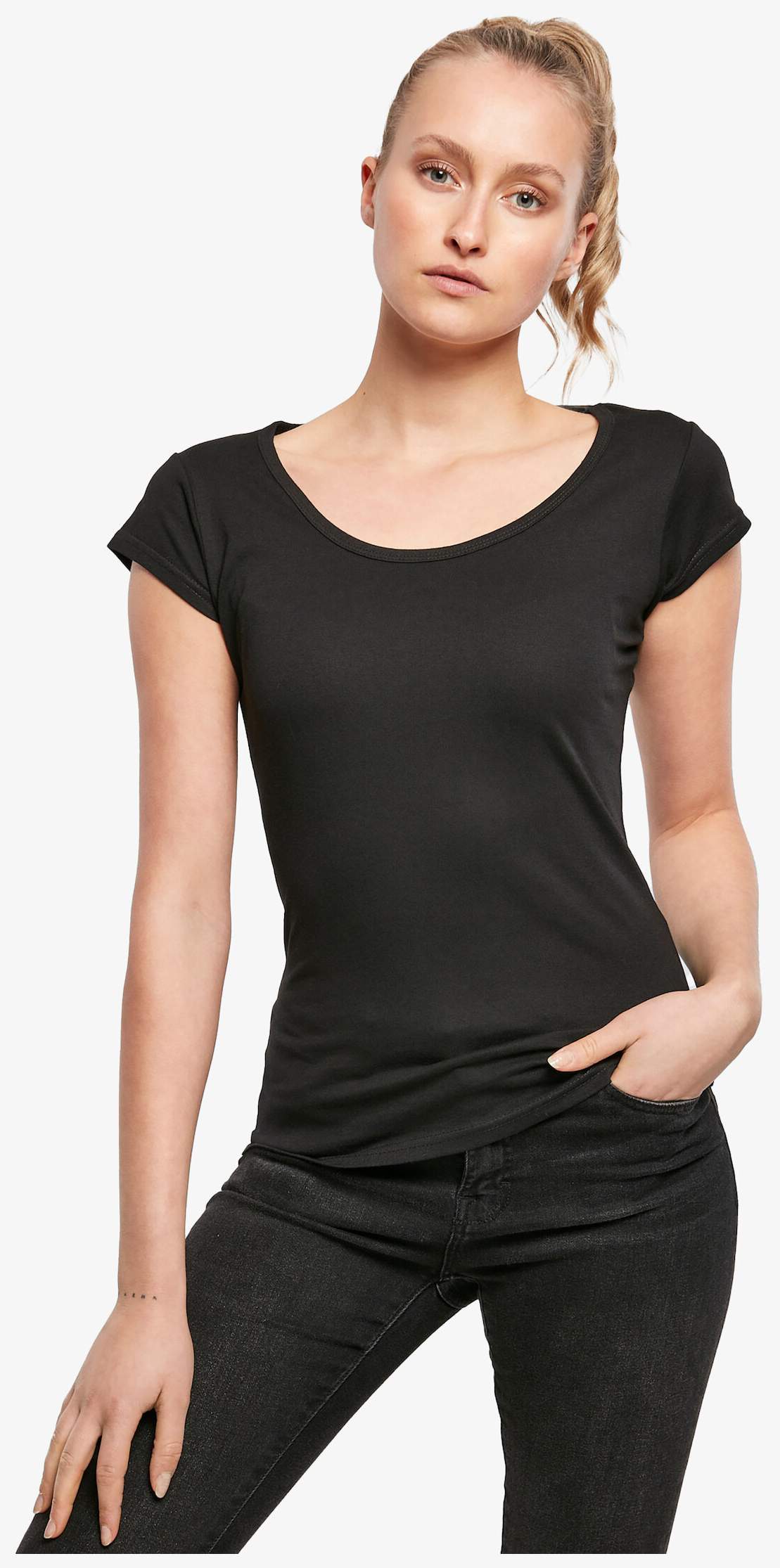 Der Ladies Back Cut ist ein kurzärmeliges tee-shirt aus einfachem Jersey mit offenem Rückenteil und neutralem Größenetikett.