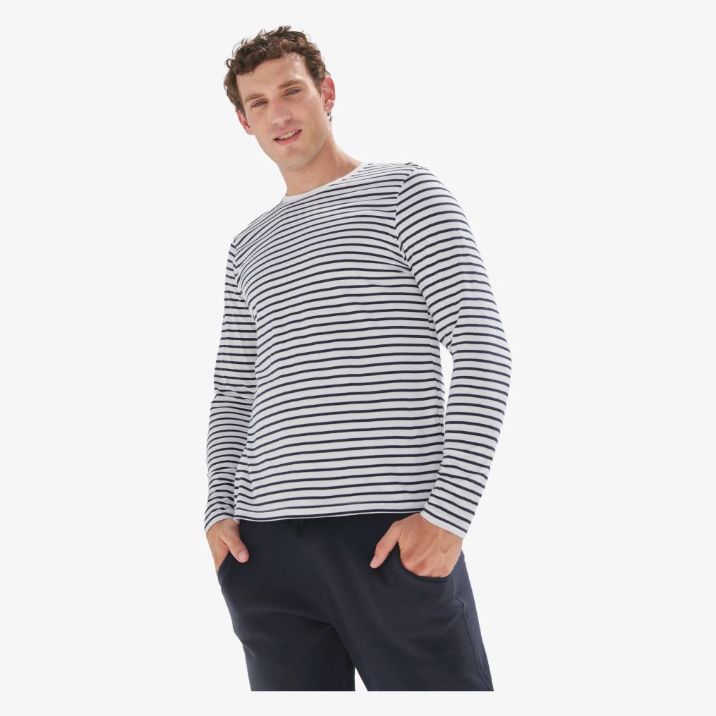 SF204 - Unisex long sleeved striped T - white/oxford_navy