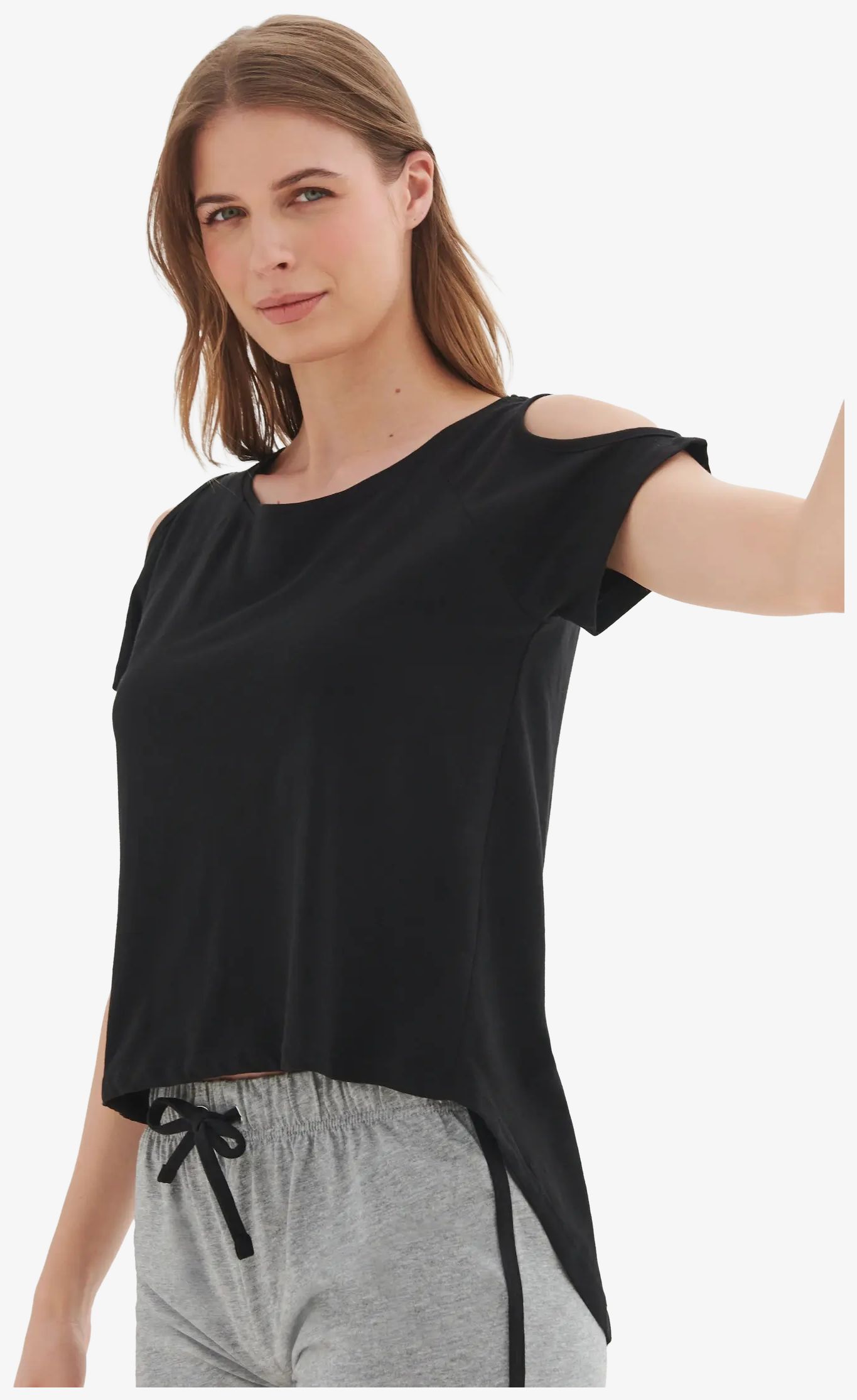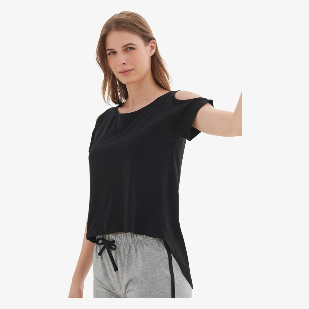 Das tee-shirt Women's drop tail T zeichnet sich durch einen sehr langen Rücken und kurze Raglanärmel mit Löchern an den Schultern aus. Die Zusammensetzung verbindet Baumwolle und Polyester für ein Gleichgewicht zwischen Komfort und Haltbarkeit.