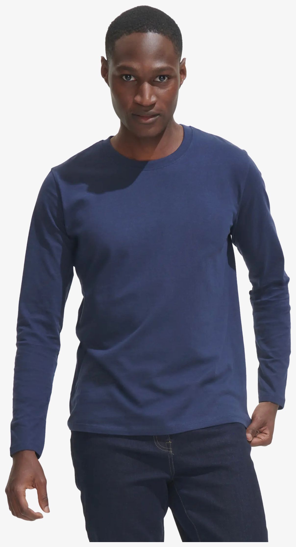 Das Langarm-tee-shirt mit Rundhalsausschnitt und elastischem Rippbündchen bietet einen Rohrschnitt und einen inneren Saumstreifen am Kragen. Die Zusammensetzung variiert je nach Farbe.