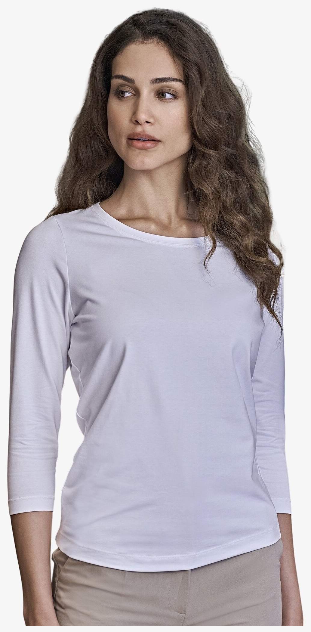 Der Ladies 3/4 Sleeve Stretch Tee ist ein tee-shirt mit 3/4-Ärmeln aus gekämmter Ringspun-Baumwolle mit Elasthan, für eine figurbetonte Passform und guten Halt im Alltag. Verstärkter Kragen, verstärkte Schultern und Steppnähte.