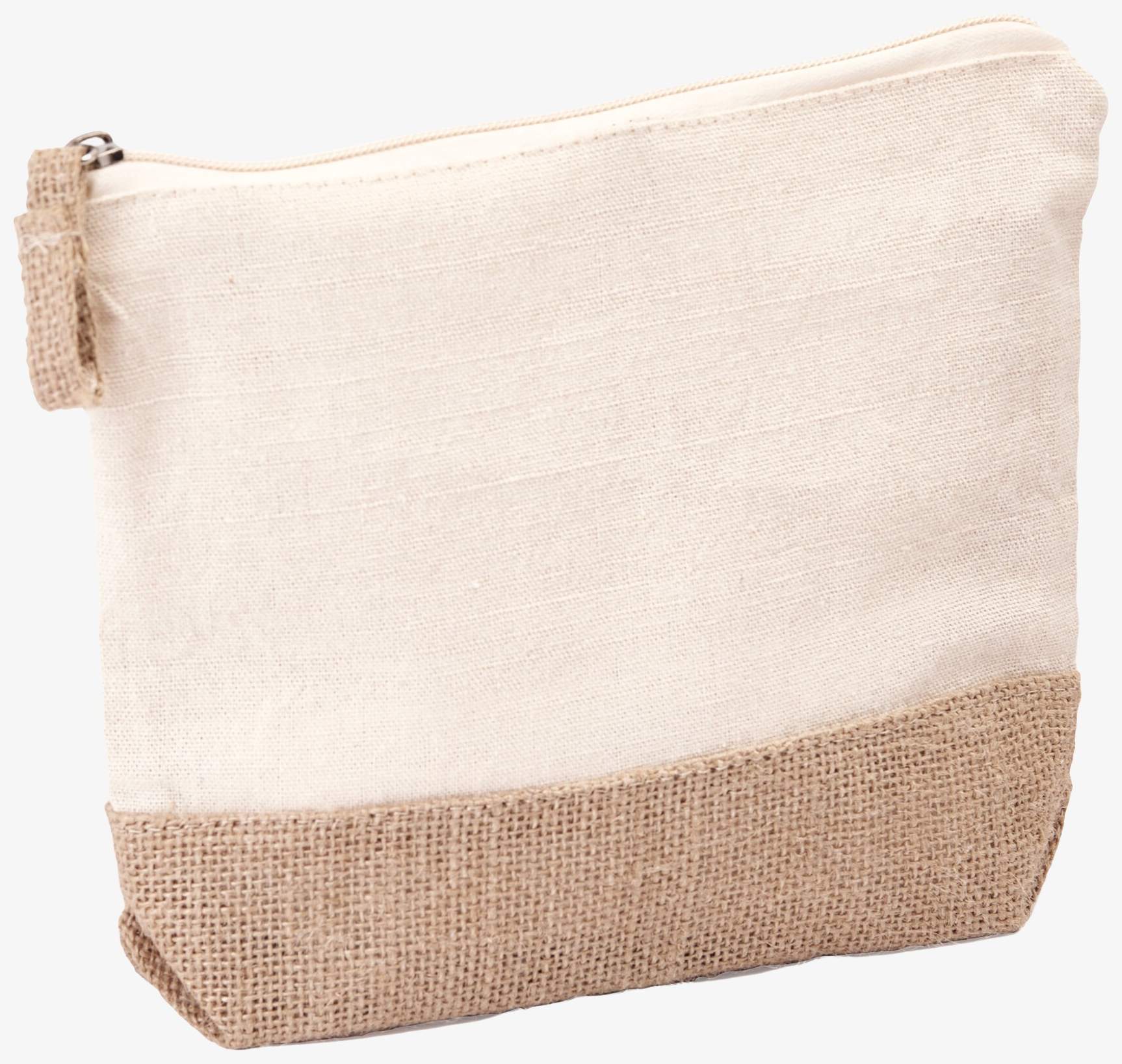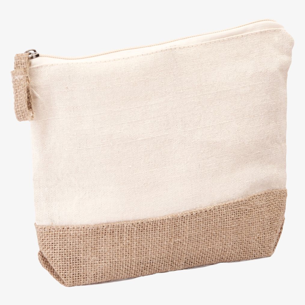 Das Sierra Etui bo7558 dient zur Aufbewahrung von Toilettenartikeln. Baumwollbasis und Jute-Elemente, mit Reissverschluss. Format 21,5 x 5 x 16 cm.